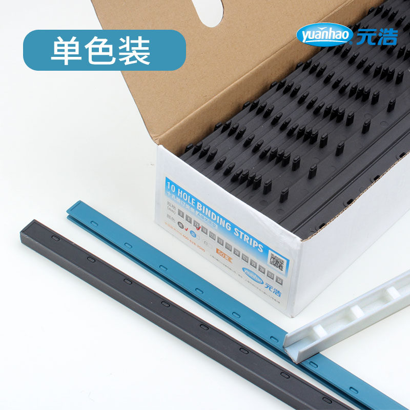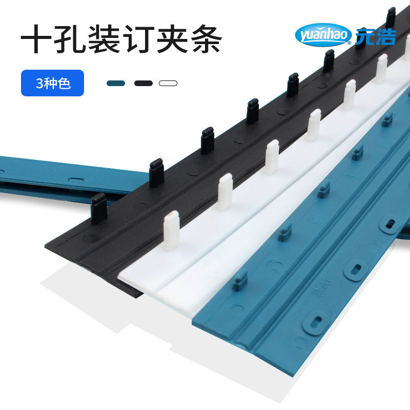元浩装订夹条10孔塑料文件打孔装订条白色黑色3mm十孔书籍资料装订成册工具活页夹环凭证文件扣压条可拆卸