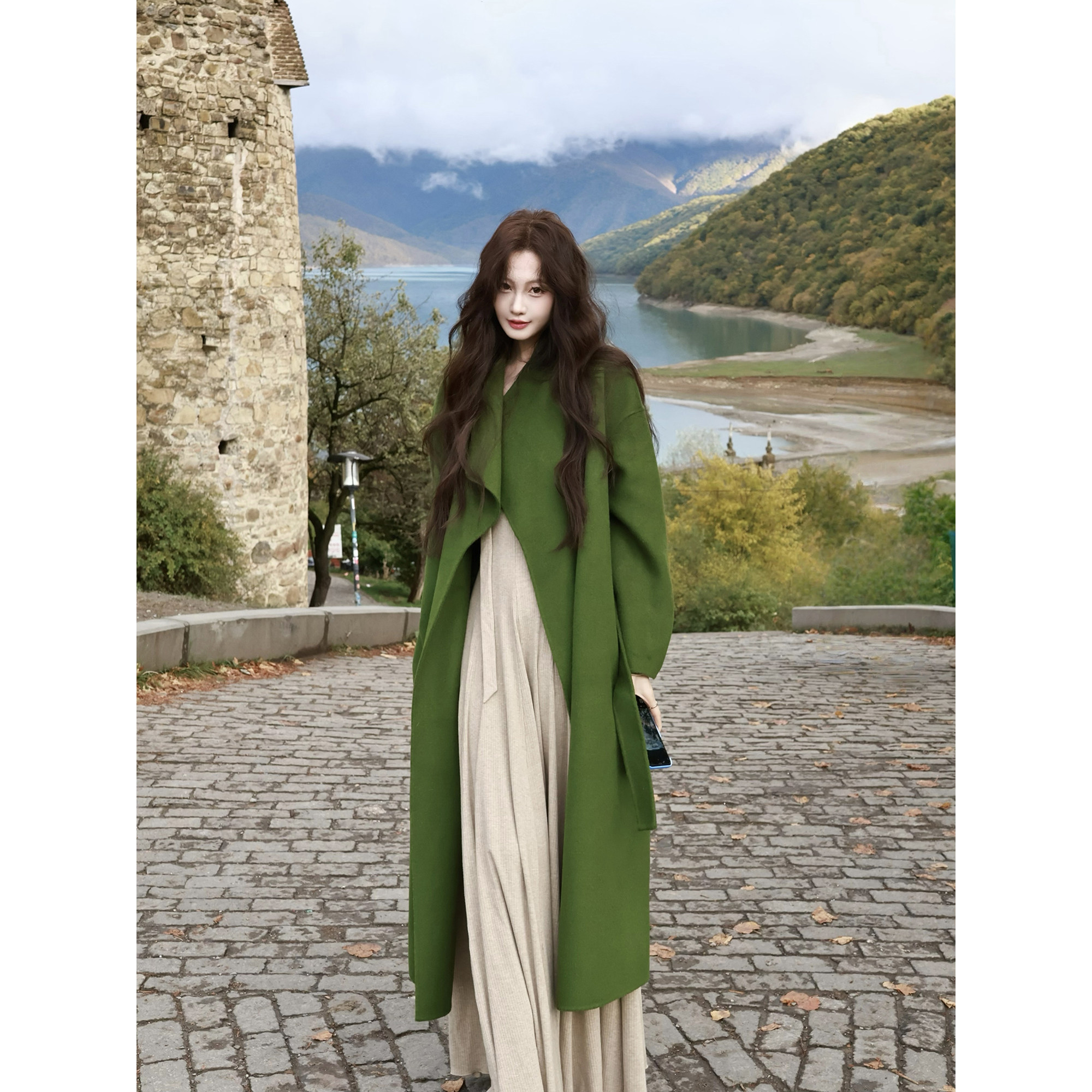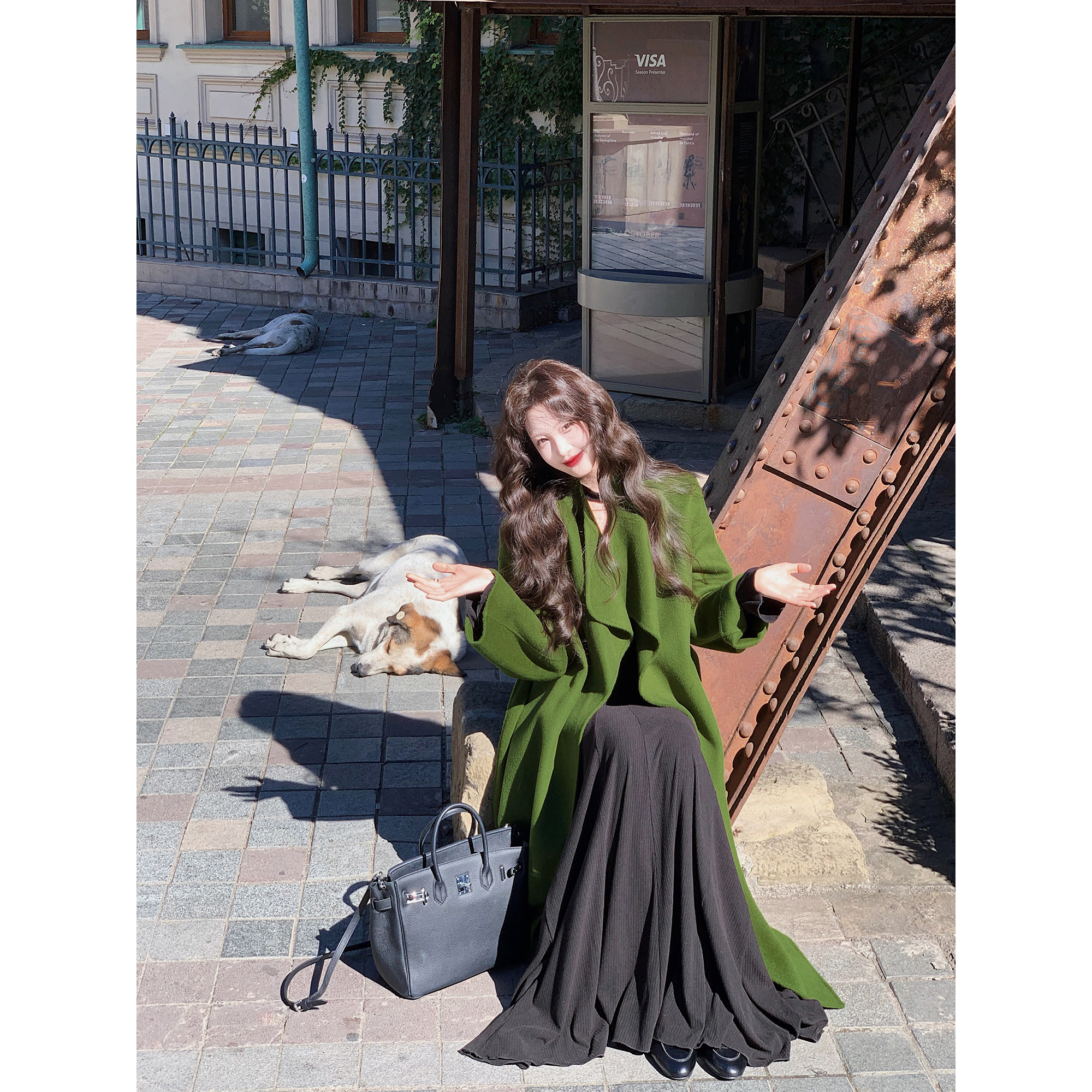 吃绿色菜【矜贵珐琅【50元券】定染绿大翻领黑金双面呢全羊毛大衣