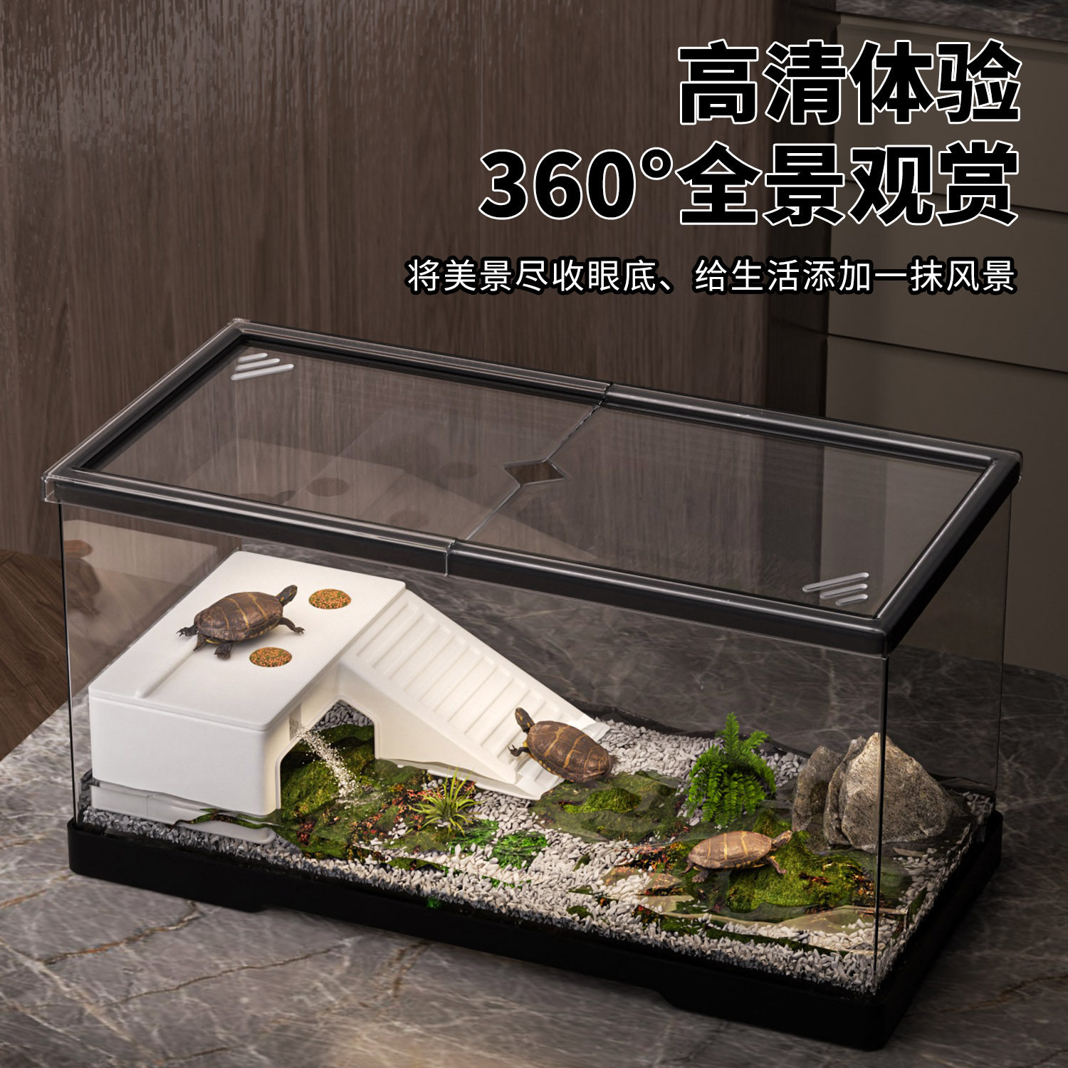 乌龟缸家用小型乌龟饲养缸爬台亚克力生态可排水鱼缸底部养龟豪华