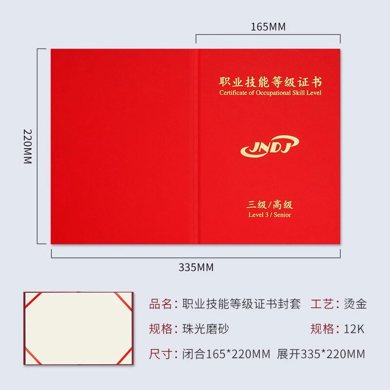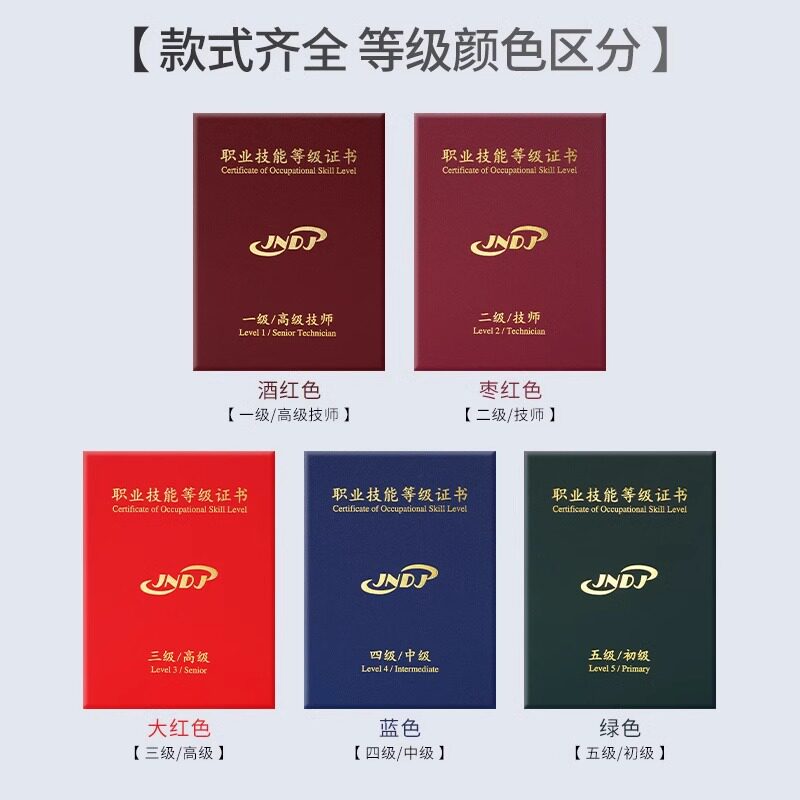 A4通用职业技能等级初级中级高级技师培训JNDJ封面合格证证书外壳封皮定制封面封套一二三四五级结业烫金证书