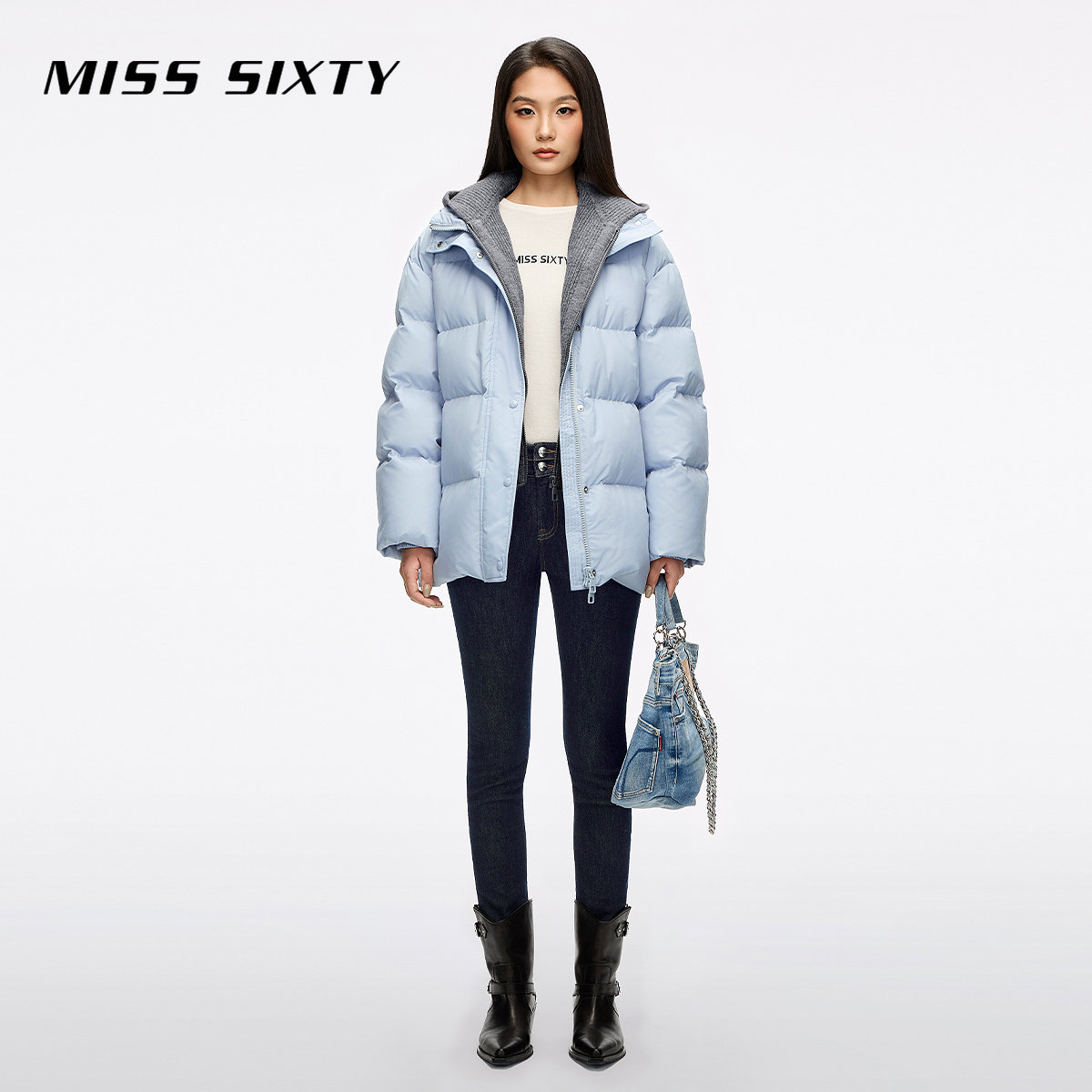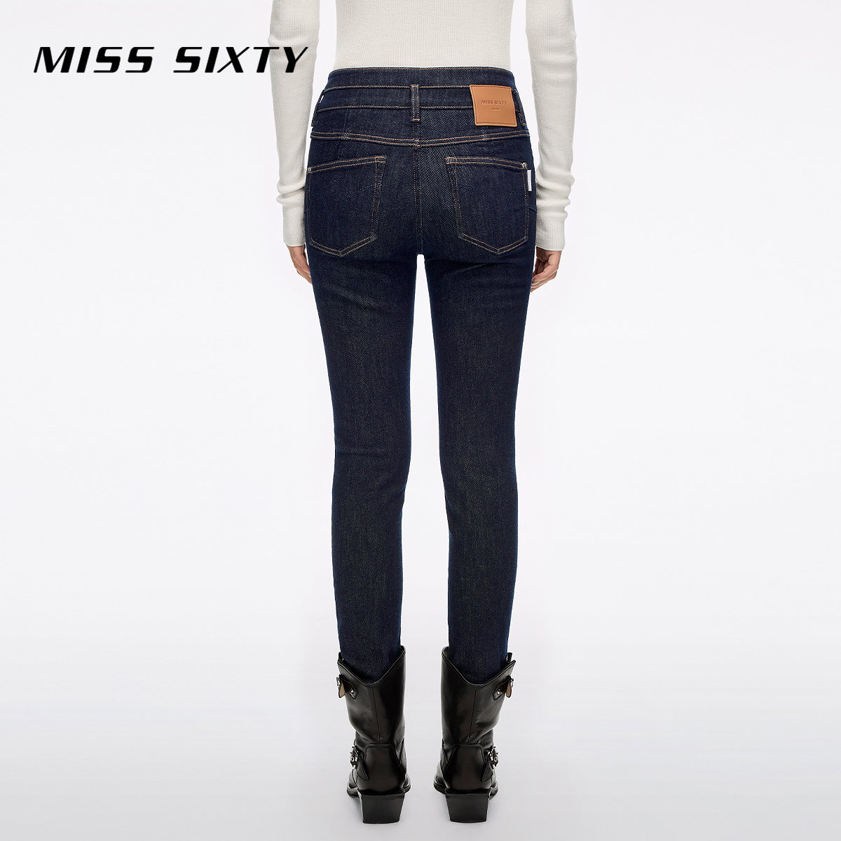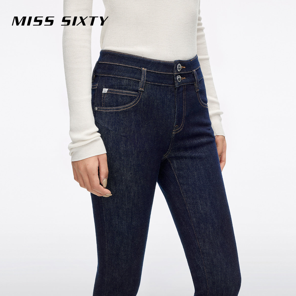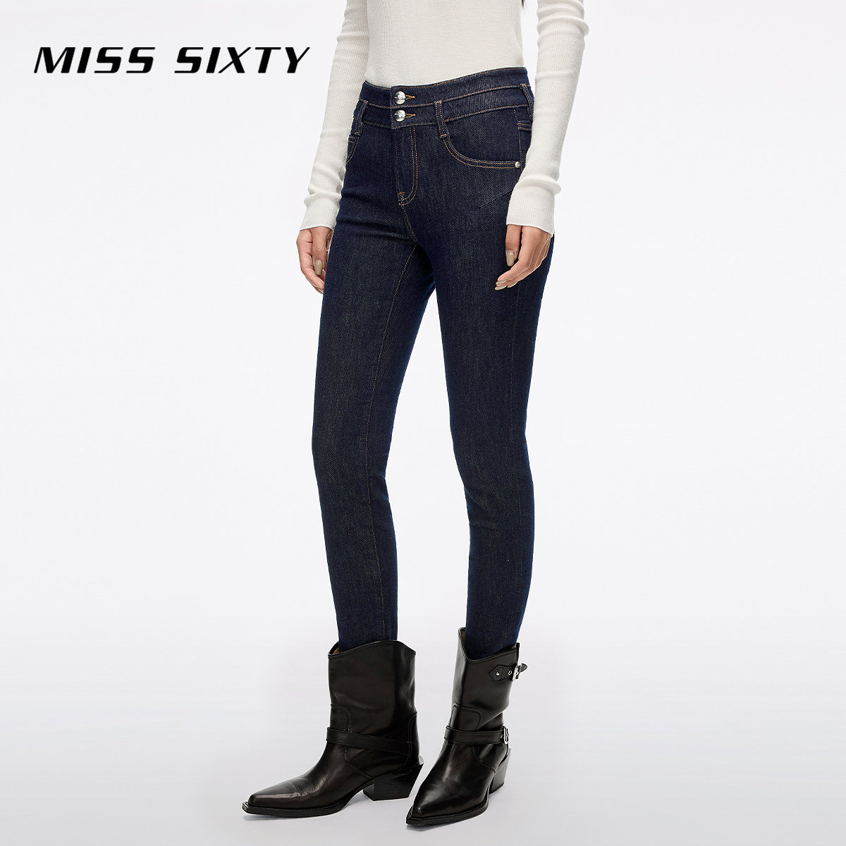 Miss Sixty2025冬季新款抓毛牛仔裤女双扣高腰显瘦紧身小脚铅笔裤