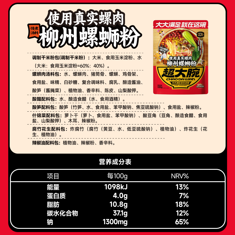 【到手5袋】地域美食柳州螺蛳粉/335g*5袋爽滑弹方便速食魔芋