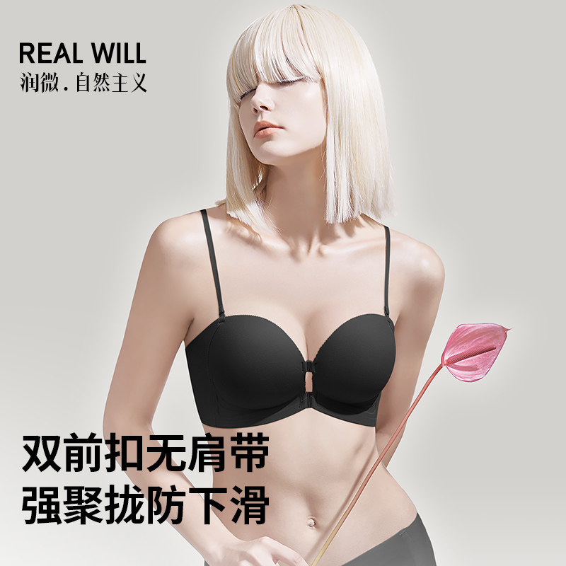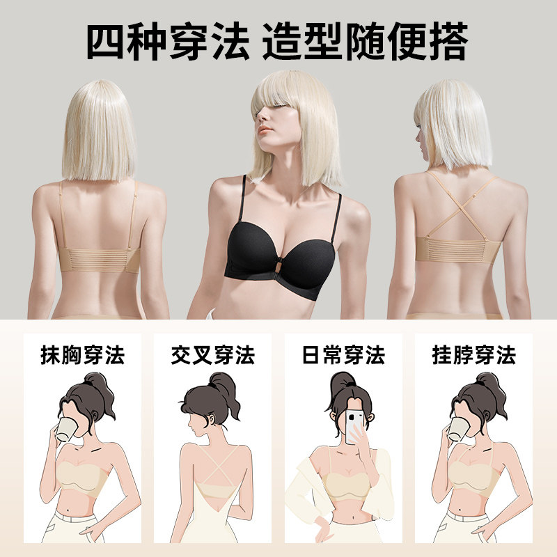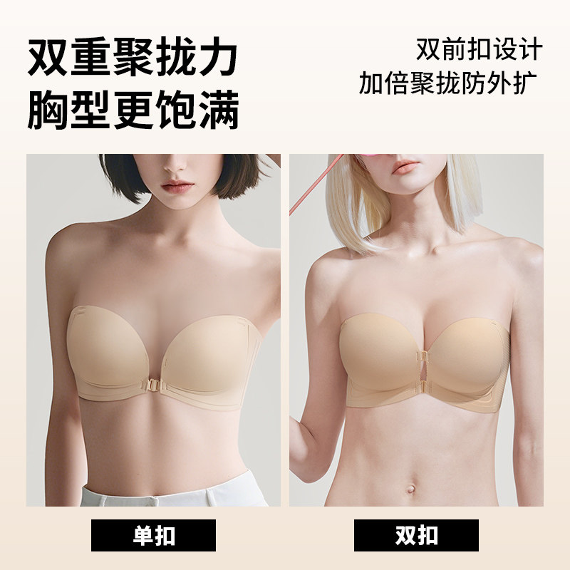 润微前扣小胸聚拢内衣女夏季无肩带防滑美背抹胸无痕无钢圈文胸罩