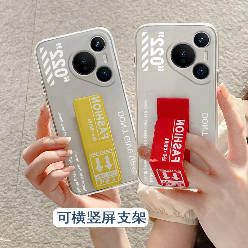 适用于华为Pura80Pro+手机壳透明Pura70磁吸支架P60横竖屏华为P50Pro/P50E防摔折叠腕带P40/P30男女个性潮牌