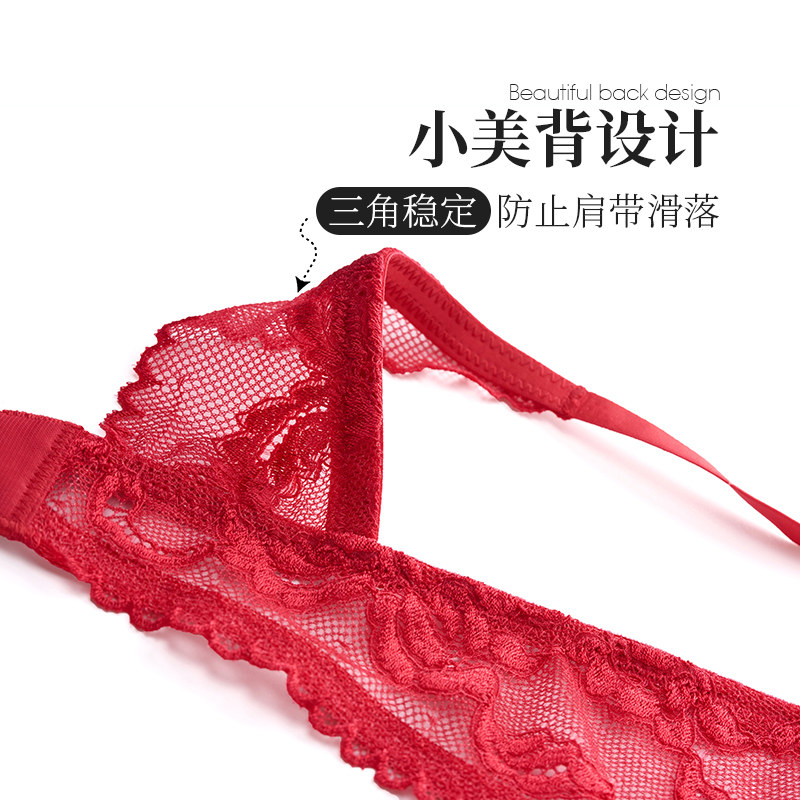 夏娃的诱惑本命年大红色内衣女结婚新娘大胸显小薄款文胸套装女