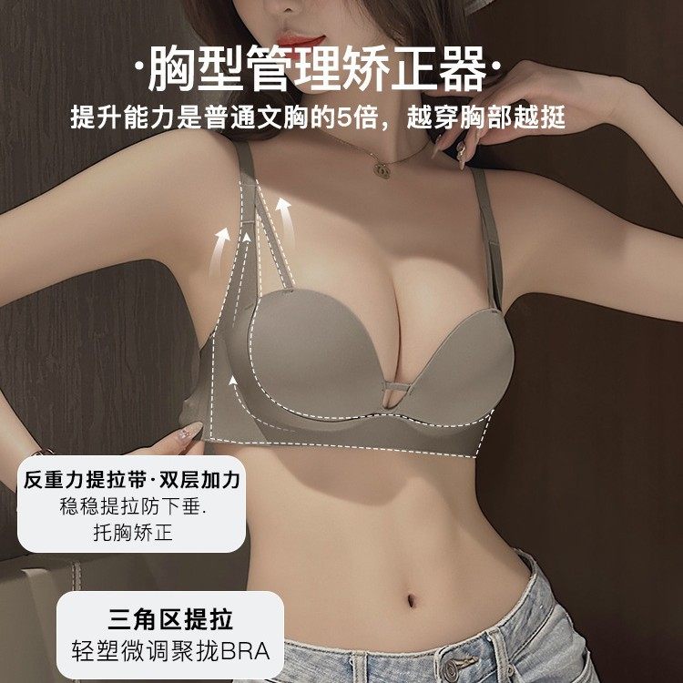 润微提拉内衣女大胸显小无痕防下垂收副乳胸罩爆款隐形粉底液文胸