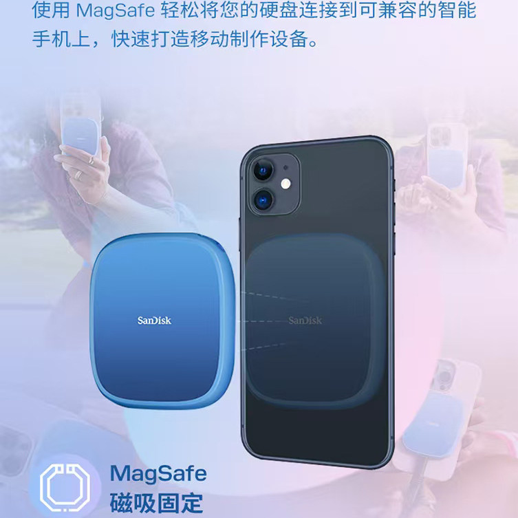 SanDisk闪迪移动固态硬盘E62C磁吸高速1T 2T手机SSD固态兼容Mac