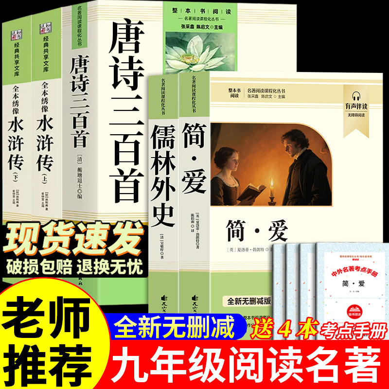 简爱和儒林外史九年级必读人民教育出版社九年级下册正版原著完整版水浒传唐诗三百首人教版语文配套名著课外阅读简爱九年级必读