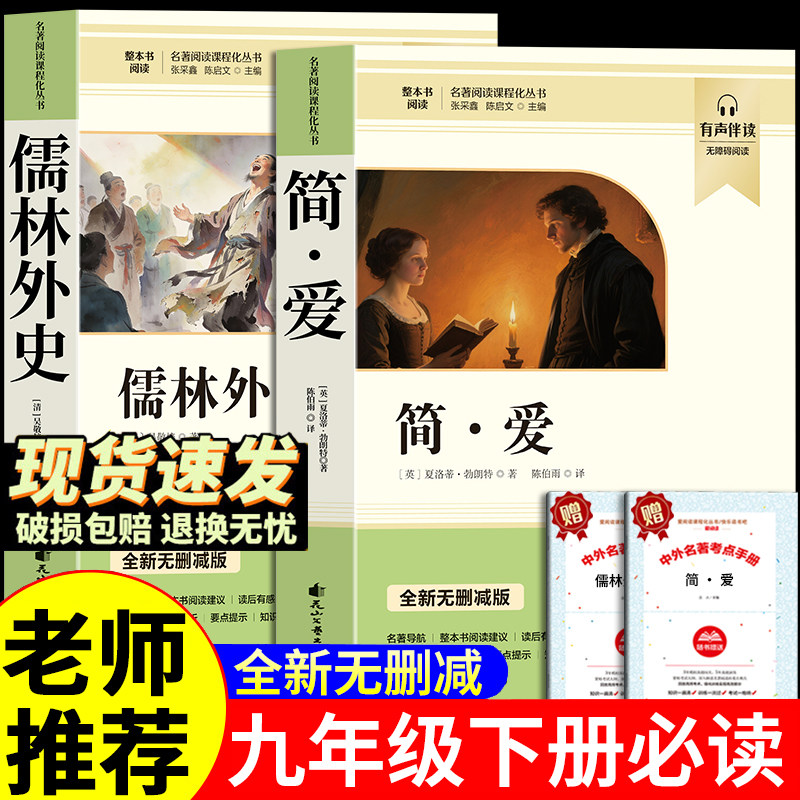 简爱和儒林外史人民教育出版社正版原著九年级下册人教版语文书教材配套完整版儒林外史九年级必读人教版原著九年级下册必读名著