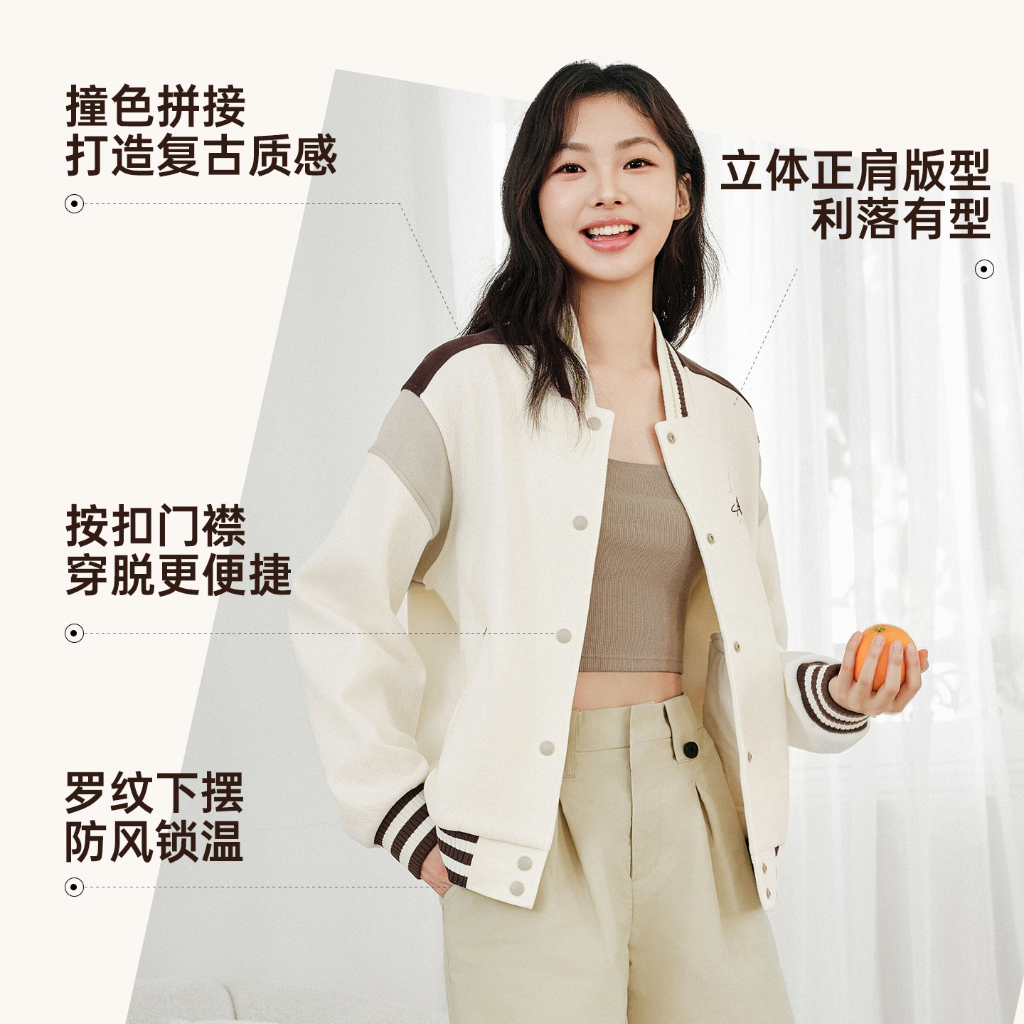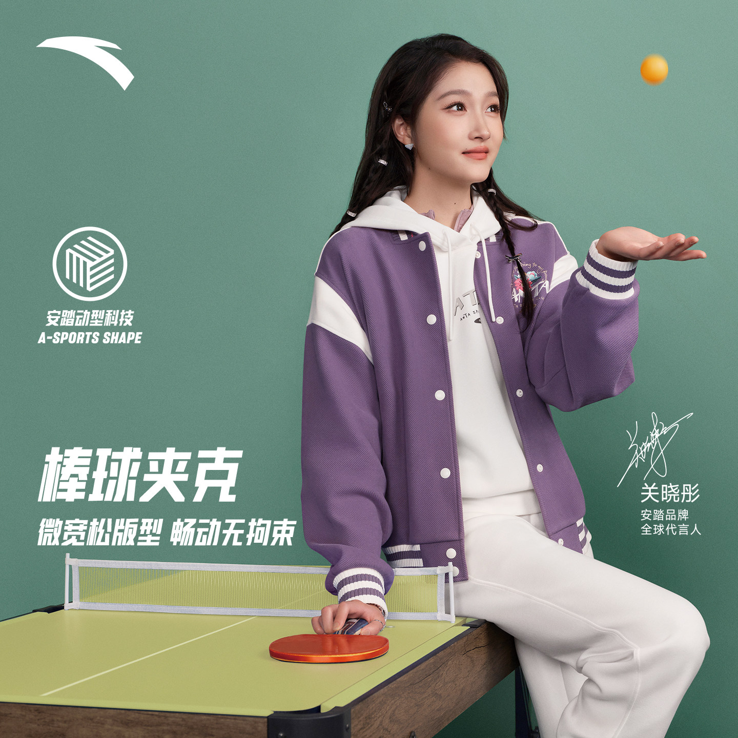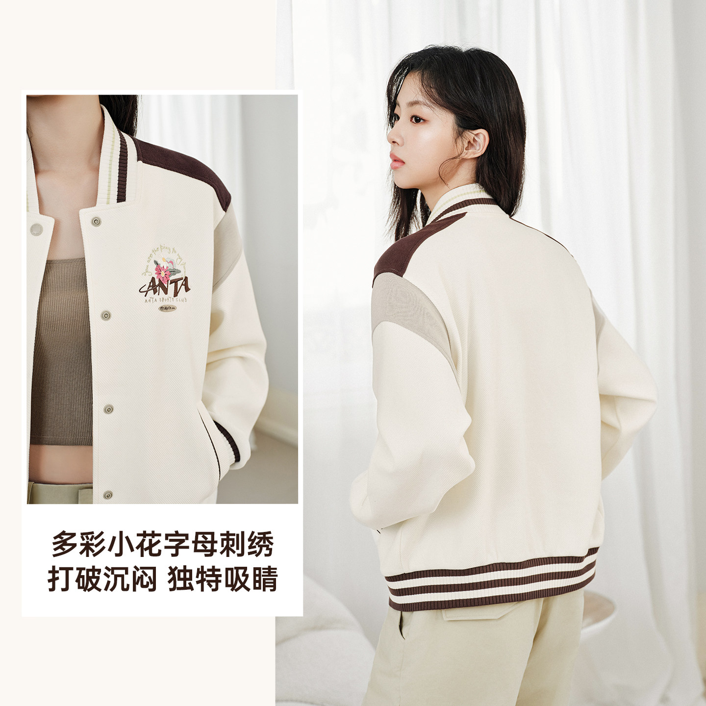 安踏美式复古棒球服夹克女士春季新款宽松休闲外套上衣162618714S