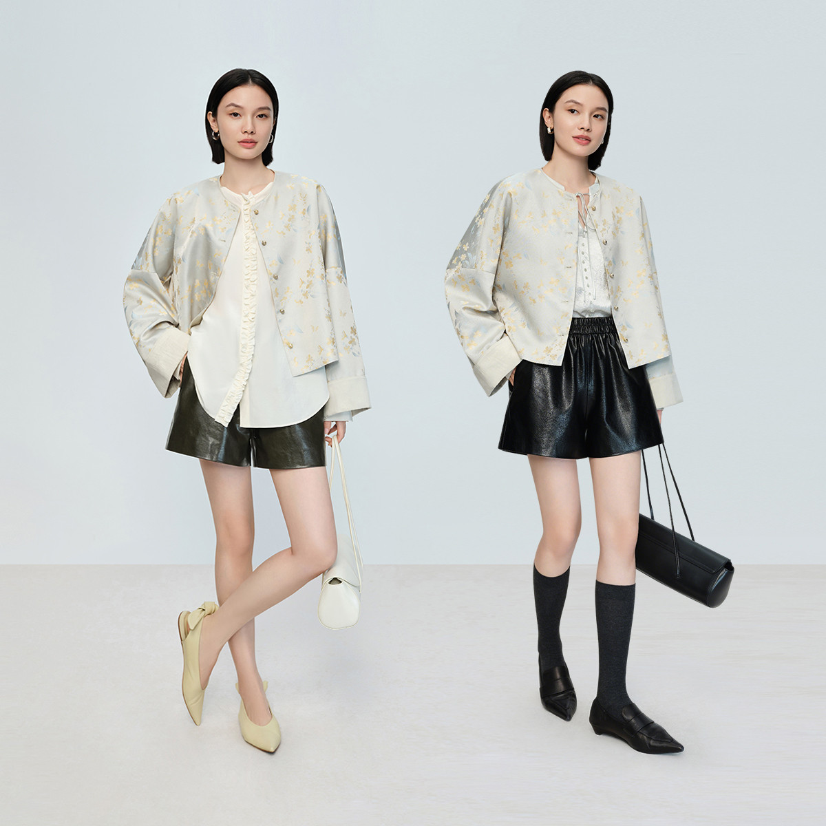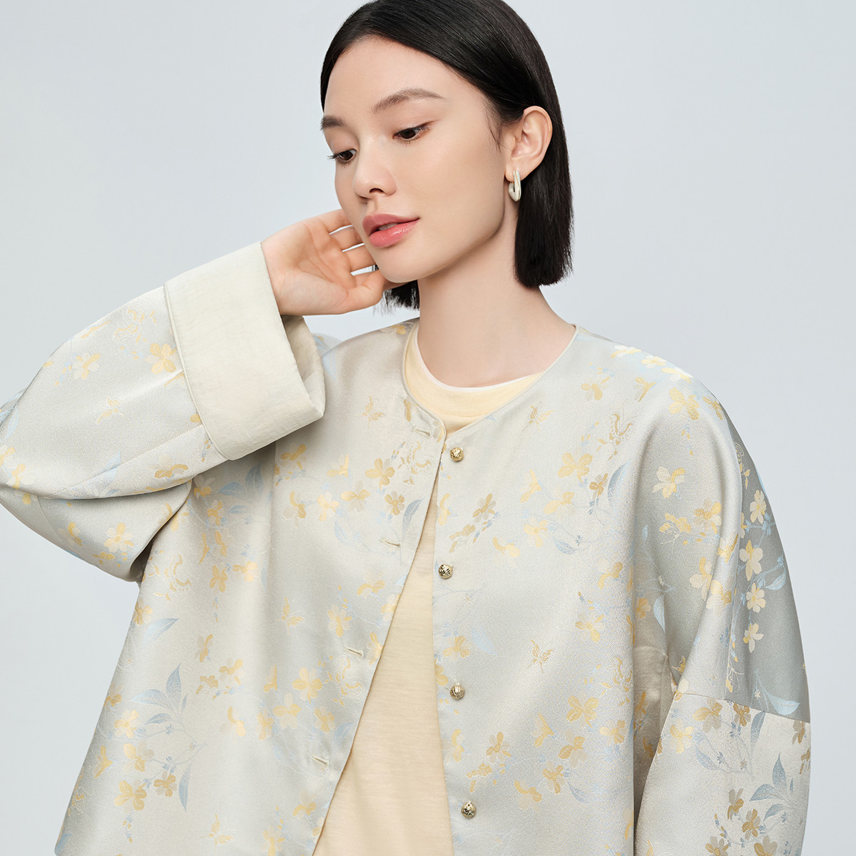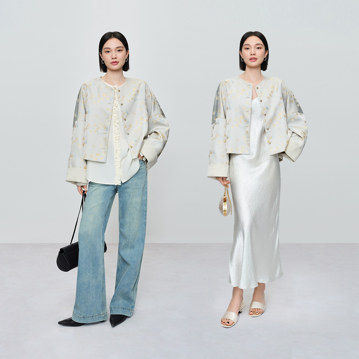 【蝶恋迎春花】naivee26春新款新中式老钱仿宋锦提花宽松短外套