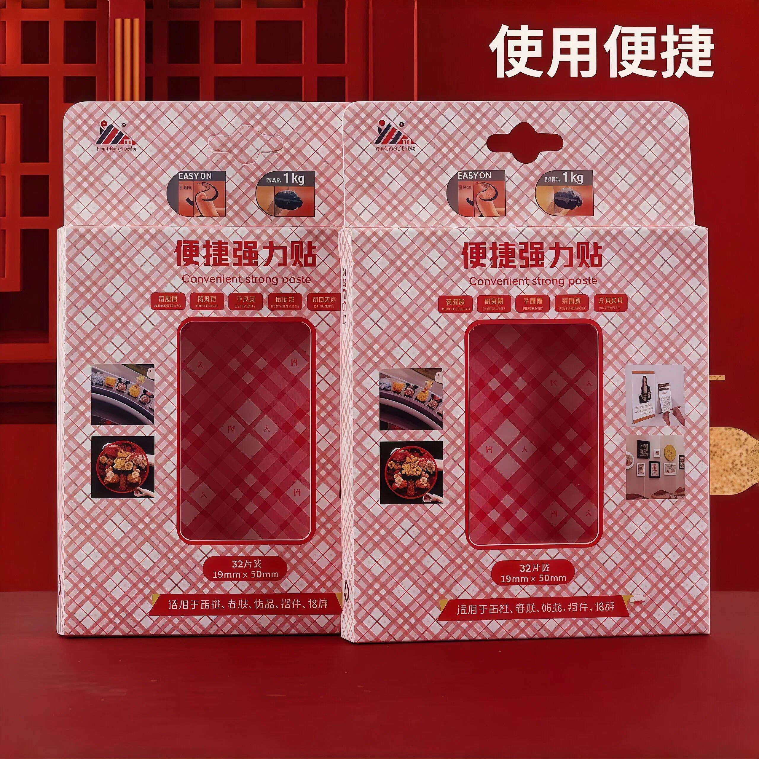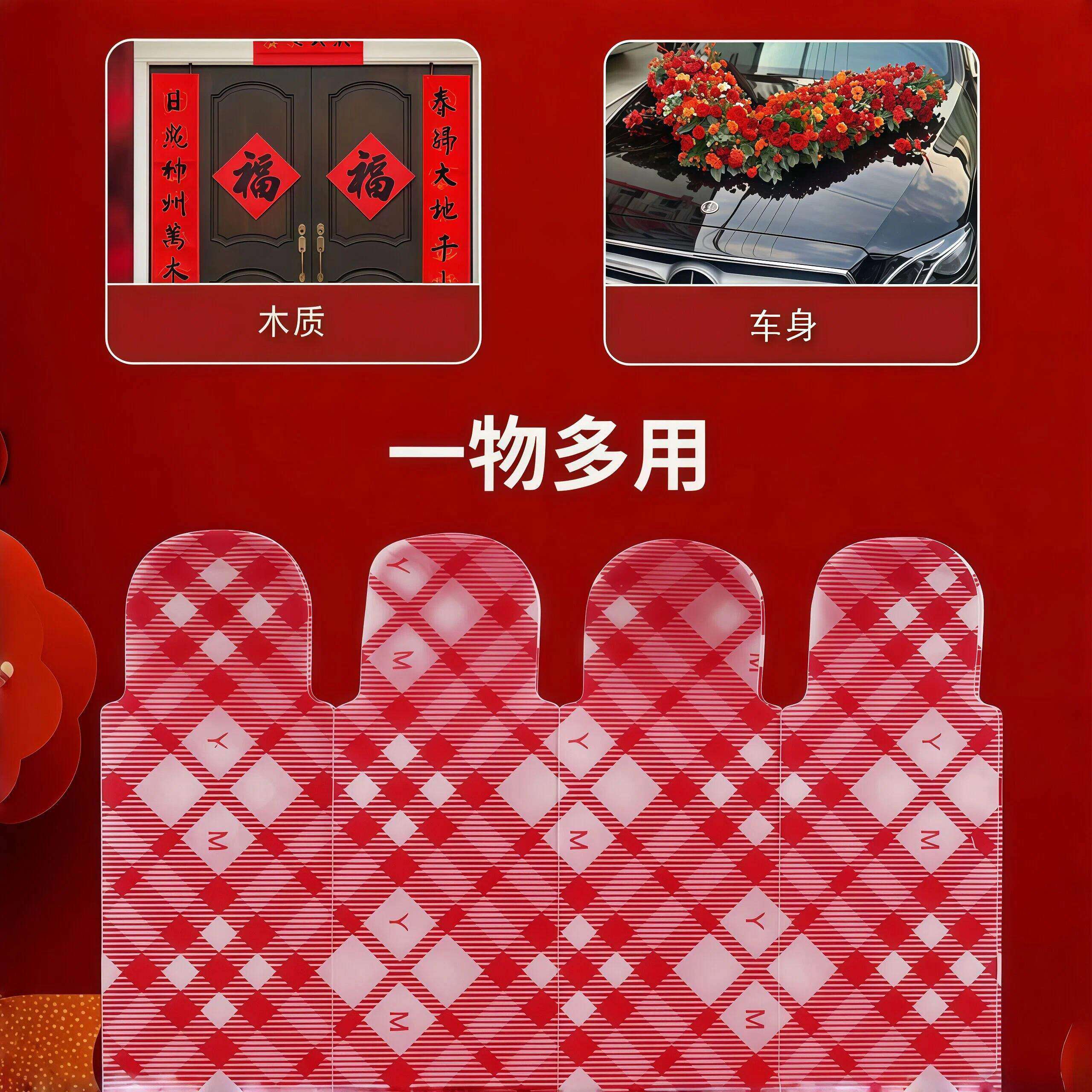 新年网格对联双面胶贴春联婚庆婚房高粘度透明胶易撕防水固定胶