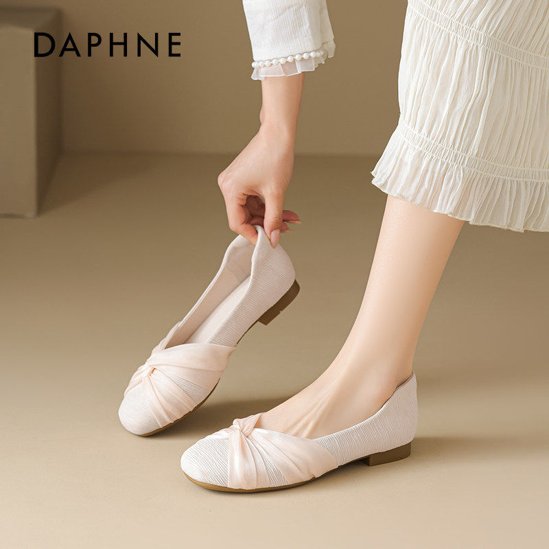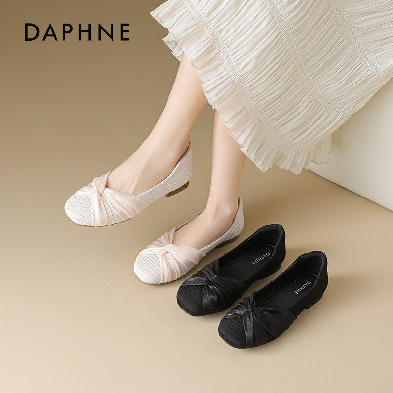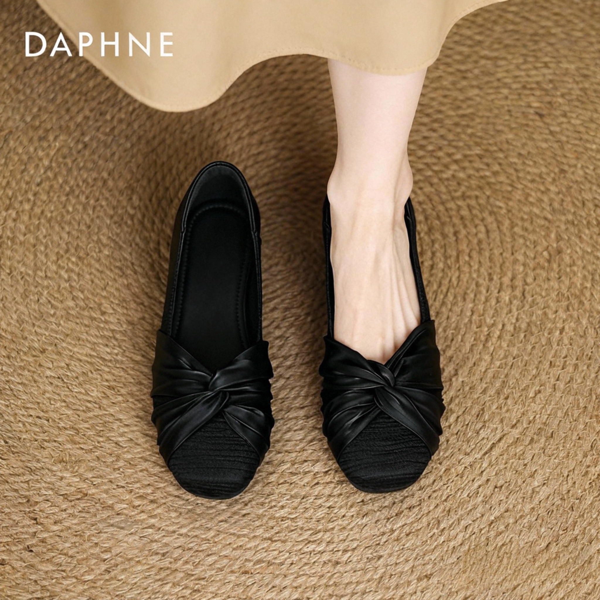 达芙妮绝美单鞋女2026平底小香风绸缎芭蕾鞋巨好看晚晚鞋黑色皮鞋