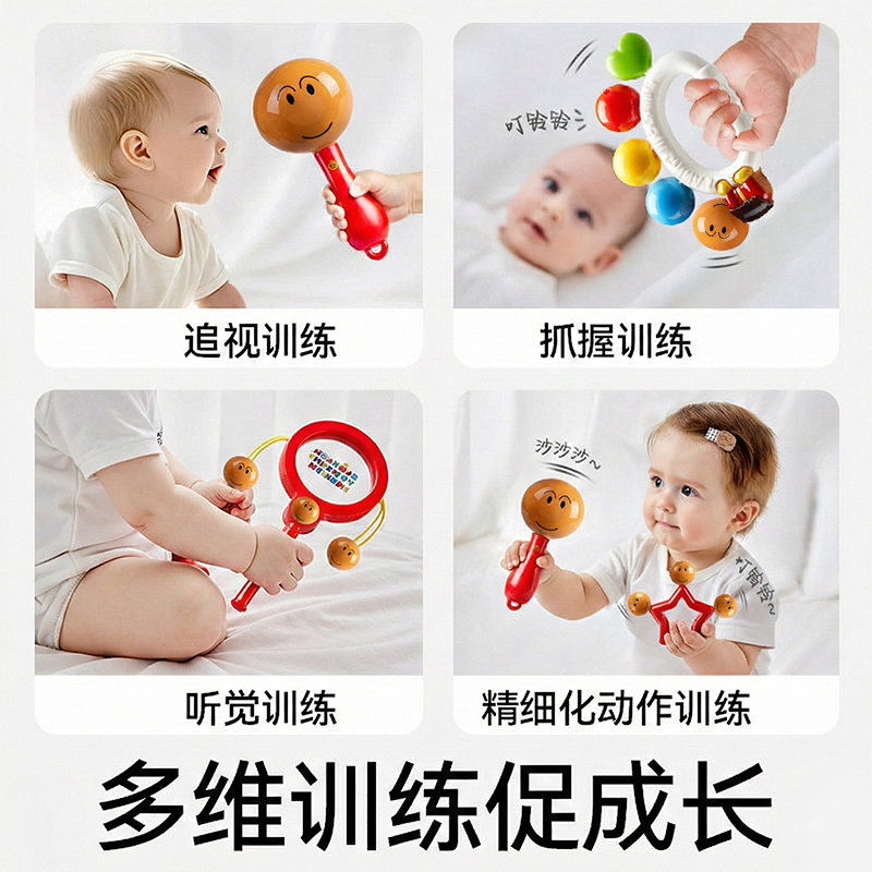 手摇铃超人新生婴儿非玩具0到6个3拨浪鼓宝宝抓握沙锤模型训练