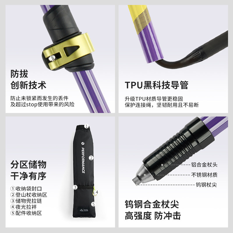 【羽翼】伯希和户外登山杖碳纤维折叠专业防滑爬山装备徒步手杖