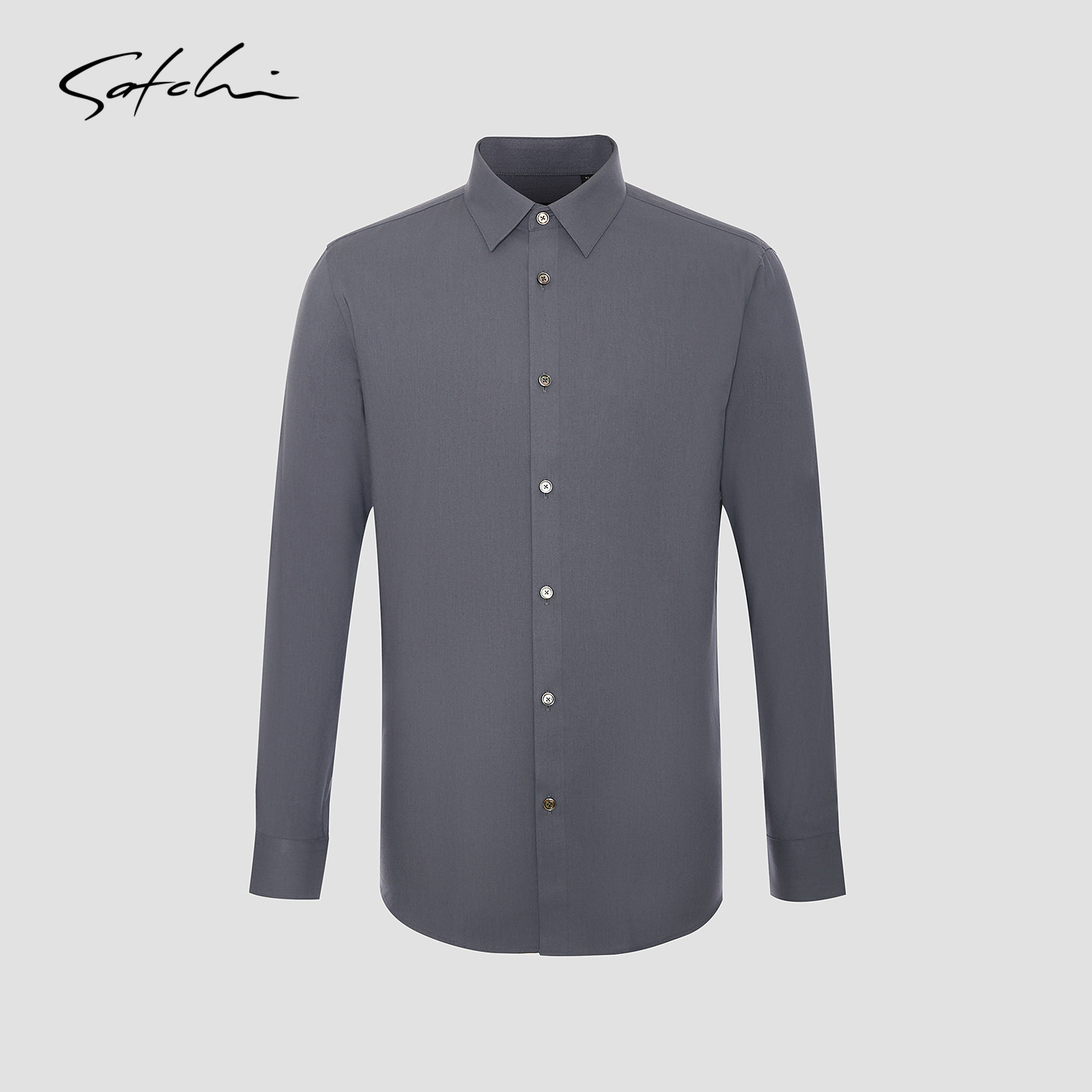 [羊毛莫代尔]SATCHI沙驰男装男士长袖衬衫冬季商务保暖磨毛衬衣厚
