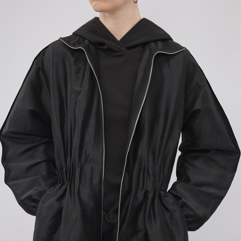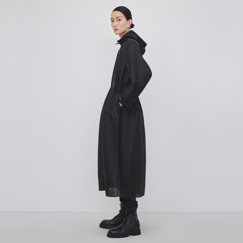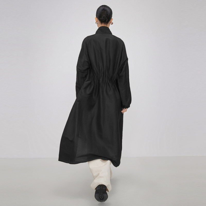 【精工系列】LESS秋季亚麻风衣女抽褶收腰立领外套2N8910220