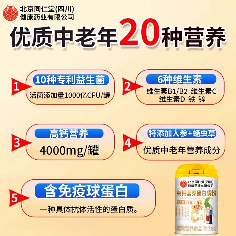 同仁堂蛋白粉增强老年人女性营养蛋白质粉免疫球蛋白官方旗舰店力