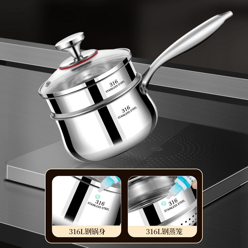 苏泊尔316不锈钢小奶锅特厚汤锅小煮锅泡面锅家用蒸饭锅辅食小a4