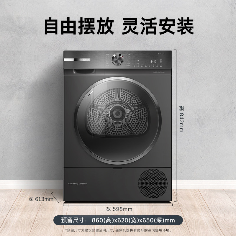 【政府补贴】博世6系除菌除螨10公斤家用官方热泵烘干机滚筒式C10