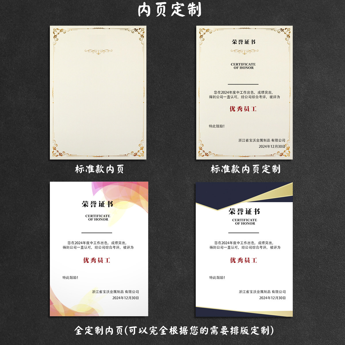 荣誉证书A4封皮获奖证书奖状外壳内页纸定制幼儿园优秀家长毕业结业舞蹈比赛证书打印员工培训任命聘书竖款
