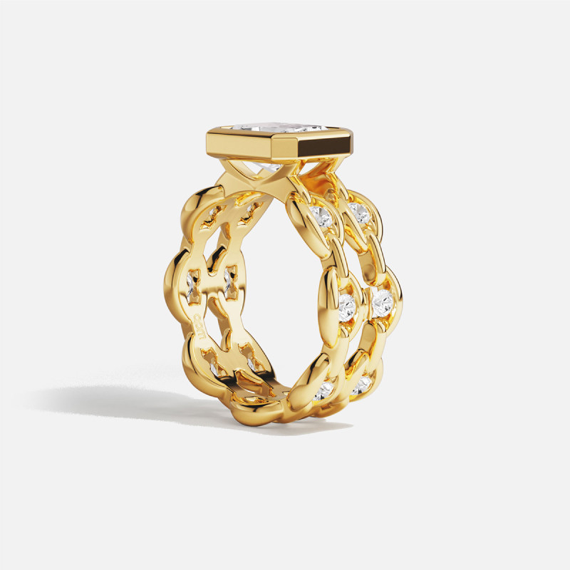 APM Monaco个性Éclat链环戒指金黄色宽版方形送人新年情人节礼物