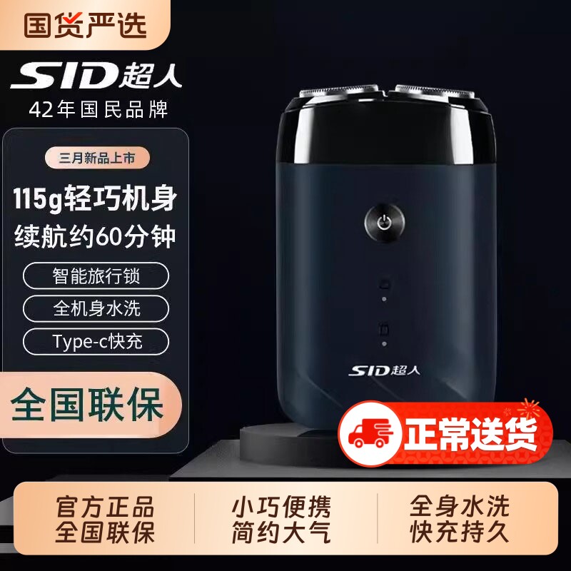 SID/超人电动剃须刀男士胡须刀刮胡刀小巧便携礼物机器充电干湿