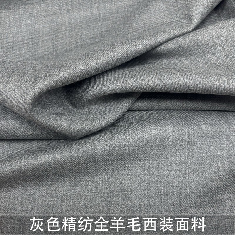 灰色精纺羊毛西装面料纯羊毛裤子外套装春秋布料男女大衣连衣裙