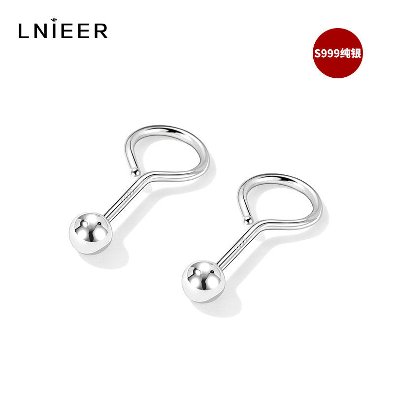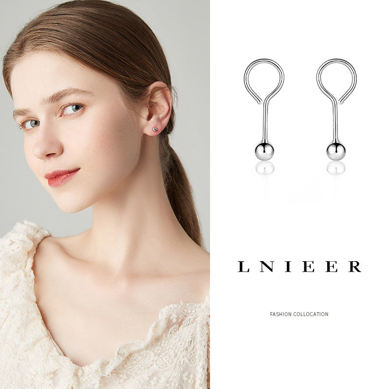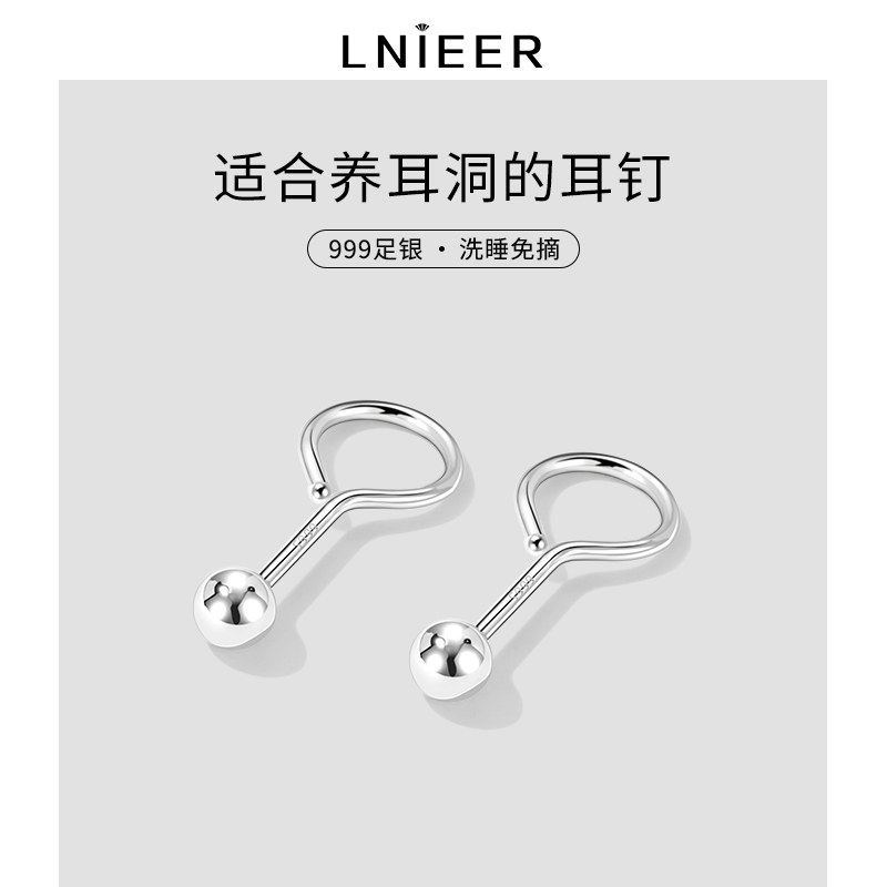 S999纯银豆豆耳钉轻奢养耳洞弯钩耳骨钉洗睡免摘2026爆款耳环耳饰