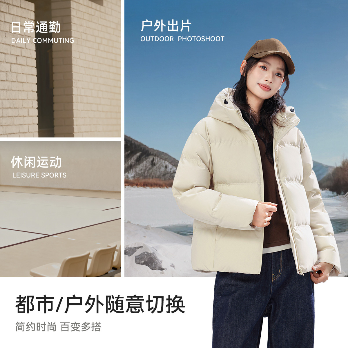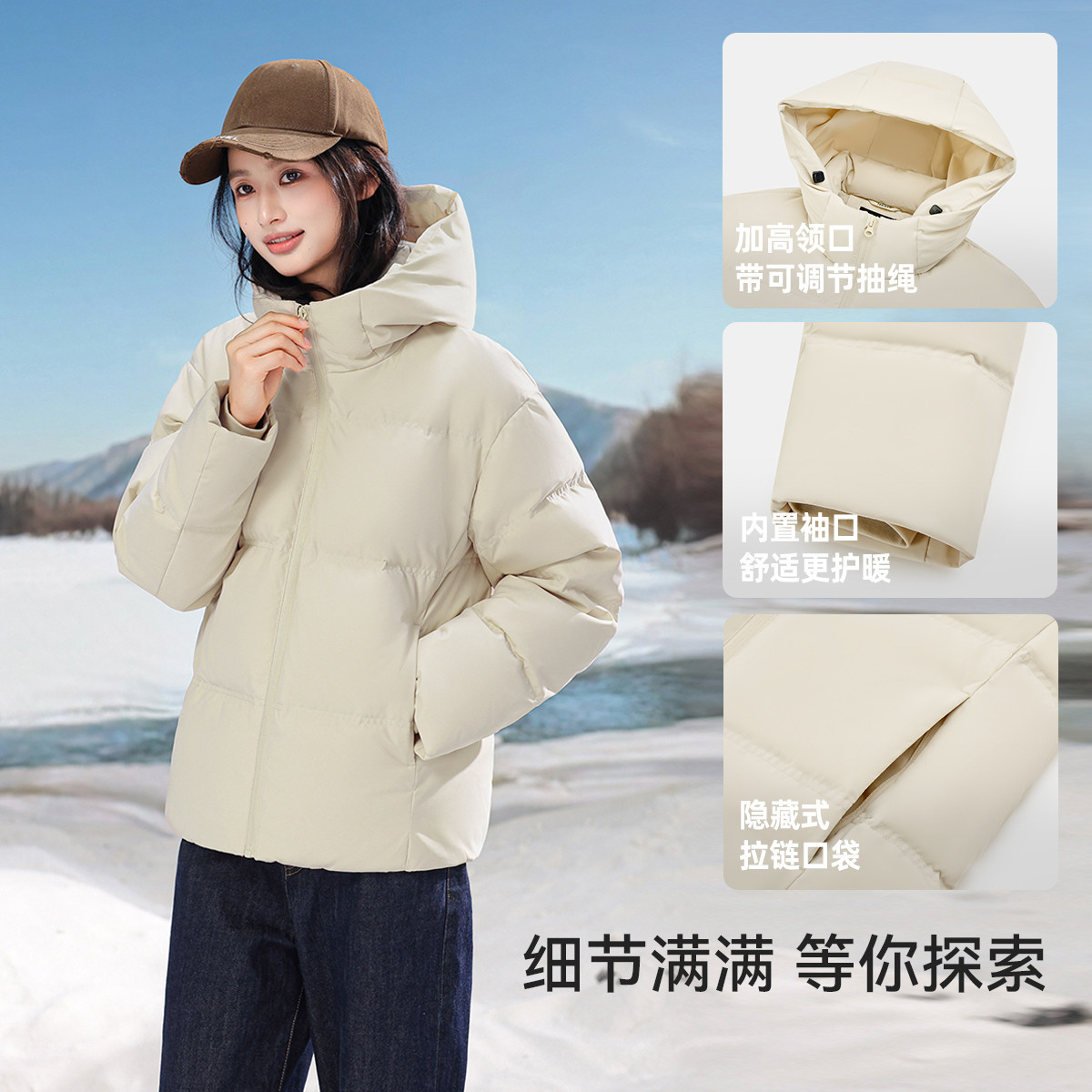 雪中飞2026春新款短款羽绒服小个子女冬休闲抗寒连帽面包服显瘦