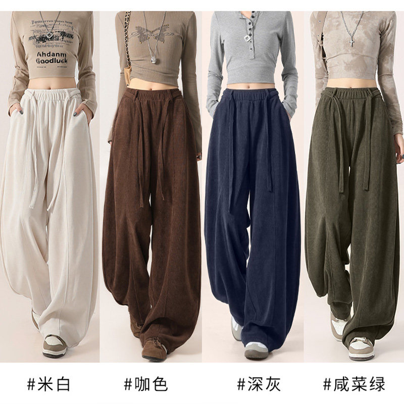 美拉德咖色裤子女2025秋冬高腰宽松慵懒松弛感加绒阔腿弯刀裤大码