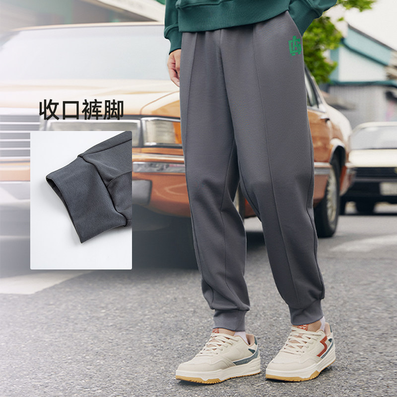 特步加绒卫裤男裤加厚秋冬款保暖缩脚裤直筒休闲裤百搭男子运动裤