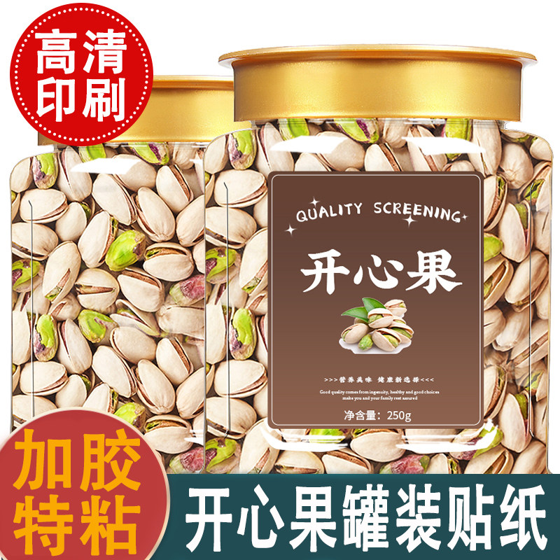 定制开心果干货不干胶每日休闲零食罐瓶子标贴干果腰果花生瓜子标签核桃巴旦木果脯商标封口贴坚果瓶身贴纸