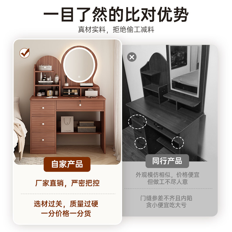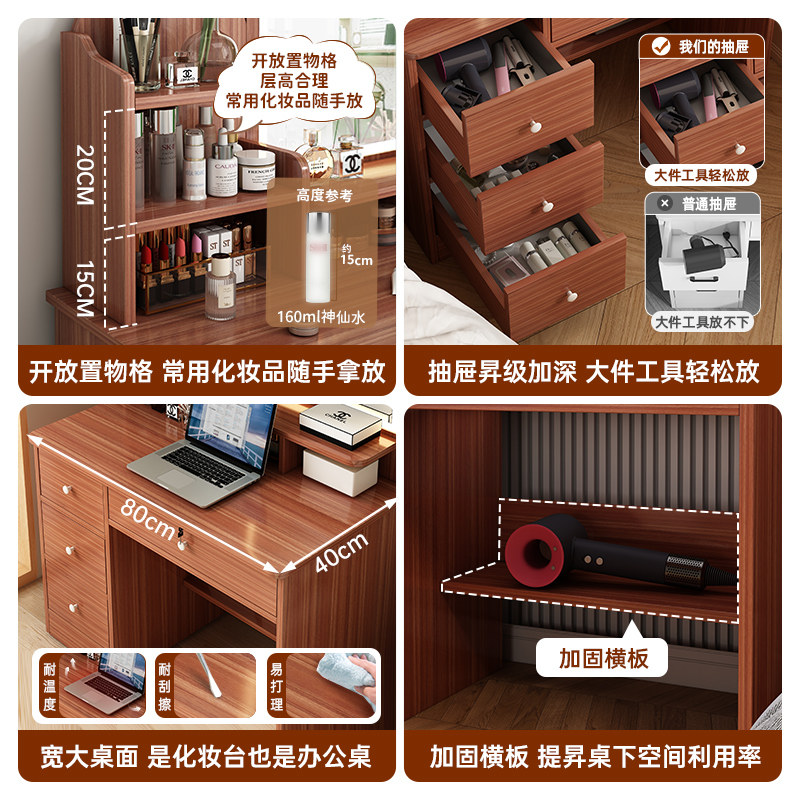 梳妆台收纳柜一体卧室2026新款小户型角落复古化妆桌家用简易书桌