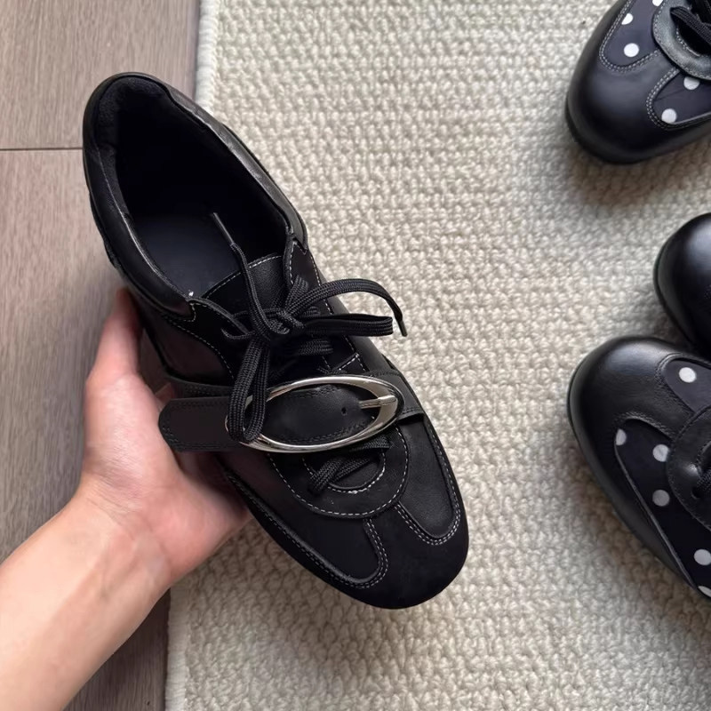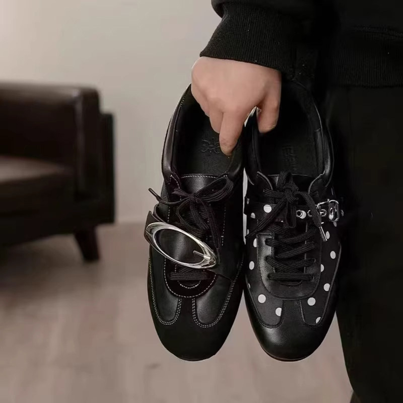 德训鞋女2026春季新款黑色运动鞋单鞋阿甘鞋平底支撑波点防滑圆头