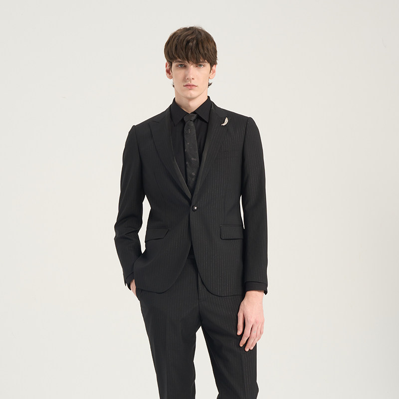 【西服套装】RARE威雅男装春夏新款暗葱竖条毛料西服西裤套装