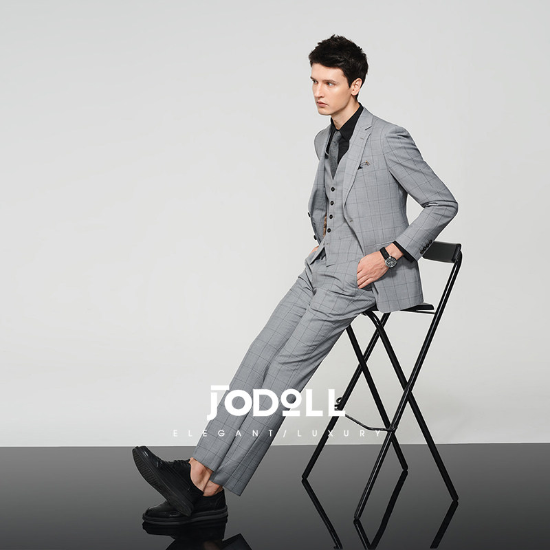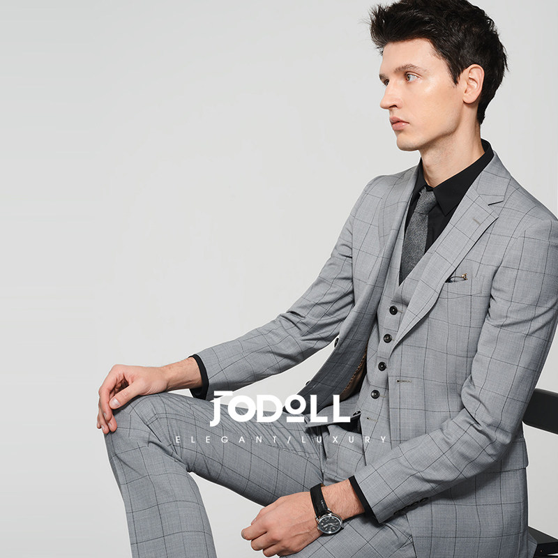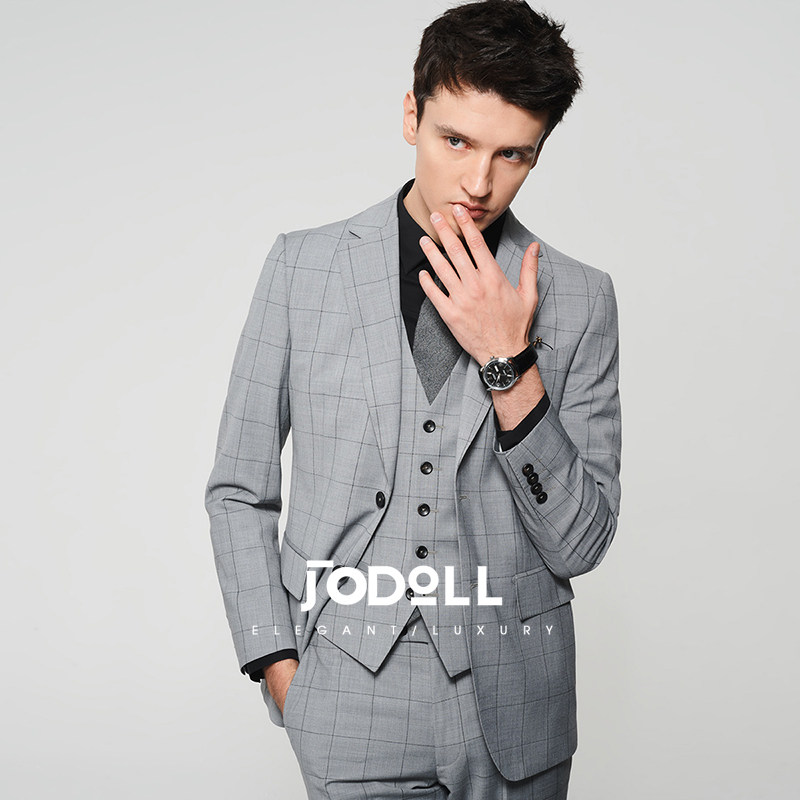 JODOLL乔顿男羊毛西服套装上衣商务正装新郎结婚格子小西装外套男