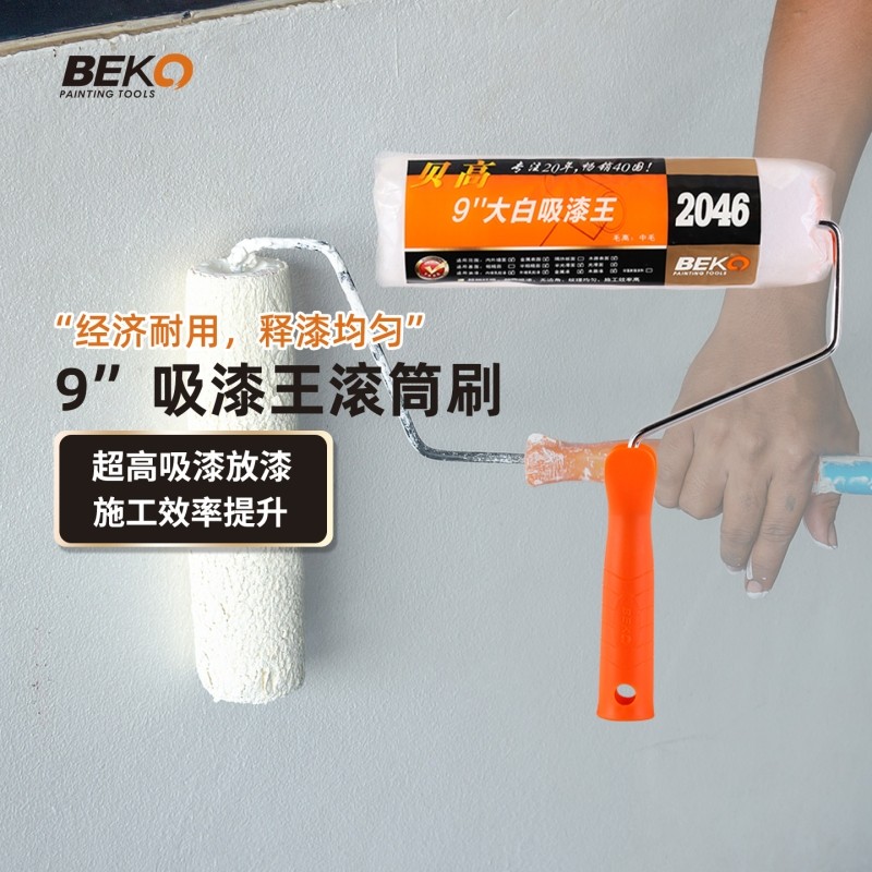 9寸乳胶漆滚筒刷细毛涂料刷子油漆工中毛涂料刷艺术漆纹理海绵
