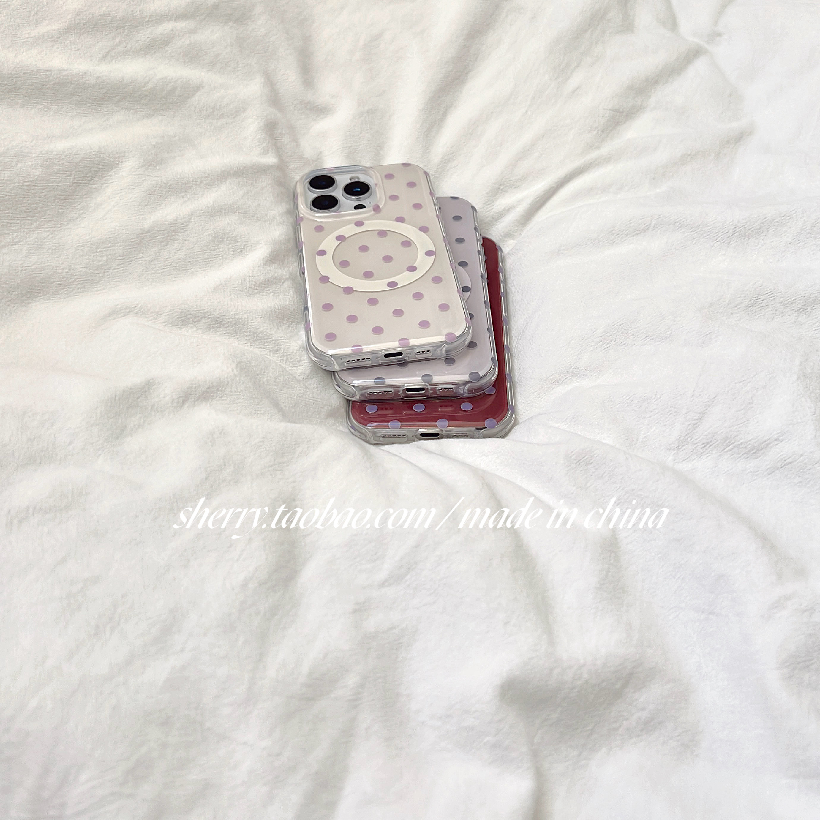 SHERRY*ins风高级感撞色波点磁吸适用于苹果16ProMax手机壳iPhone15Pro小众少女心14简约13小清新温柔甜美夏