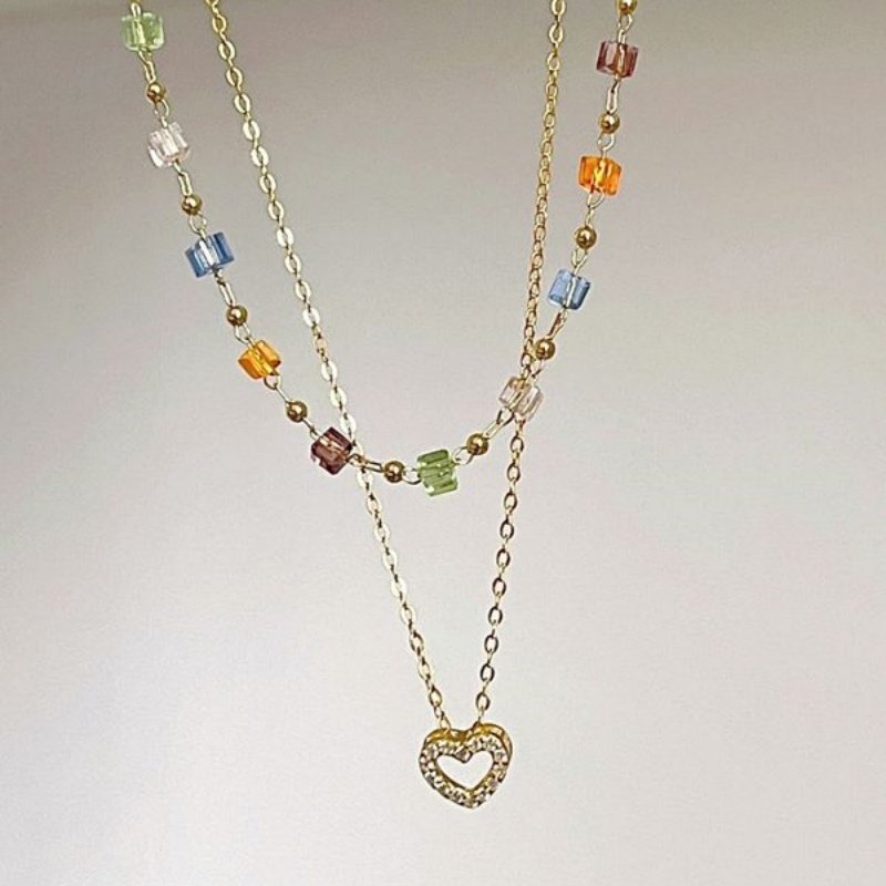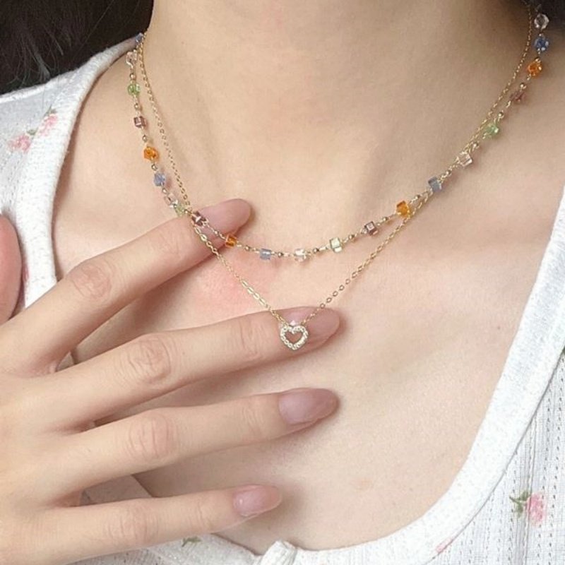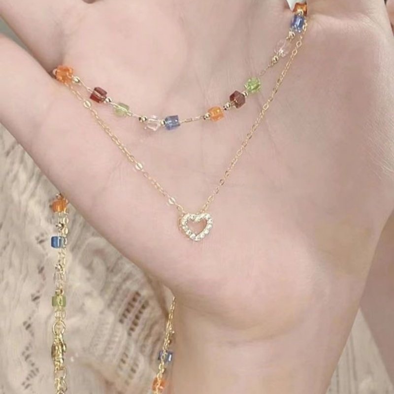 彩色叠戴项链设计少女心甜美高级感锁骨链百搭清新俏皮choker颈链