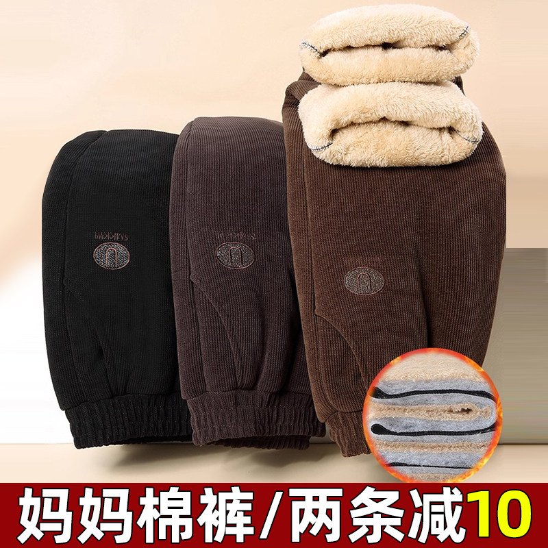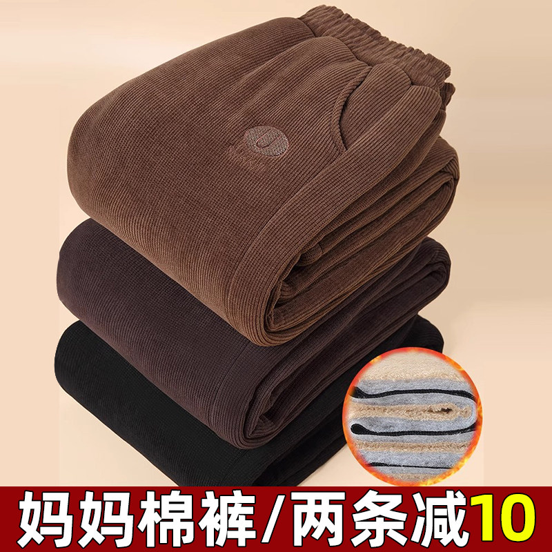 妈妈秋冬裤女外穿加绒加厚灯芯绒宽松大码中老年人奶奶裤子保暖