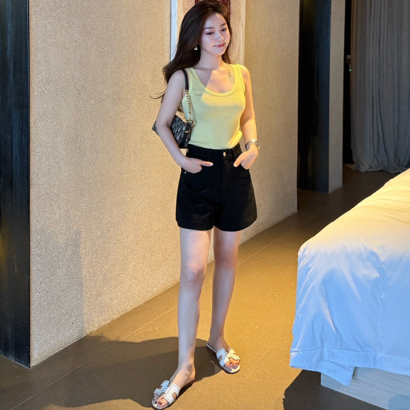 曹大曼 翘臀大长腿四面弹力薄款高腰显瘦复古百搭牛仔短裤热裤夏