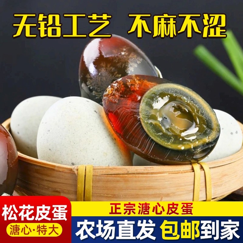 特大新鲜无铅松花蛋皮蛋溏心特产整箱流心农家土鸭蛋变鸭蛋盐皮蛋
