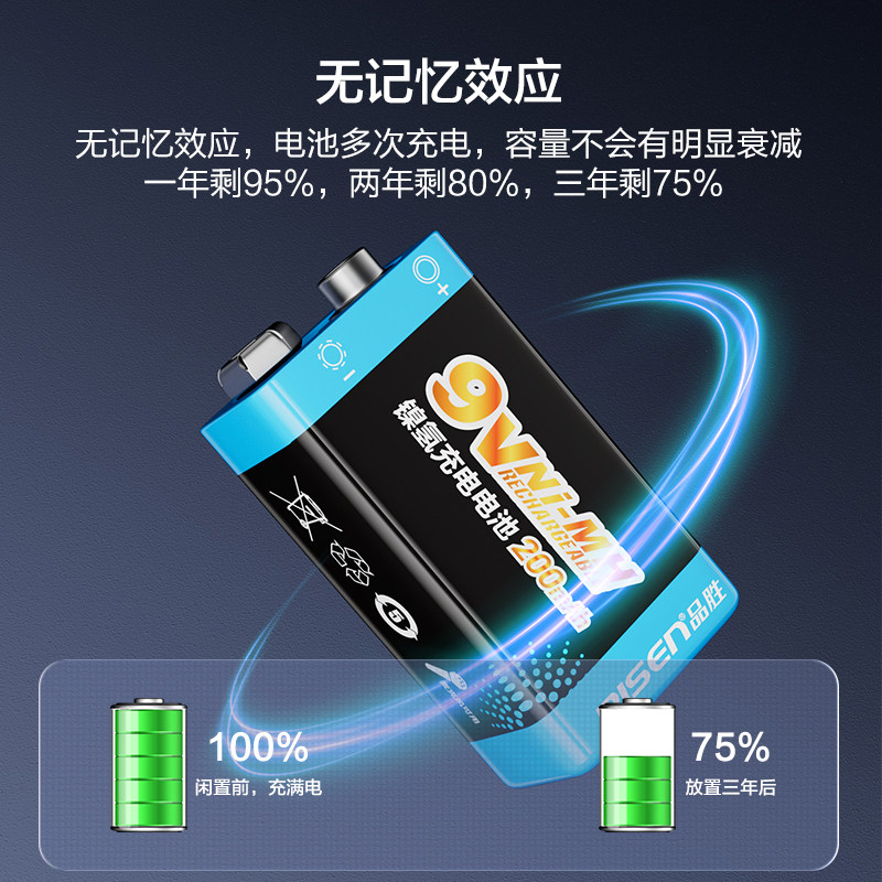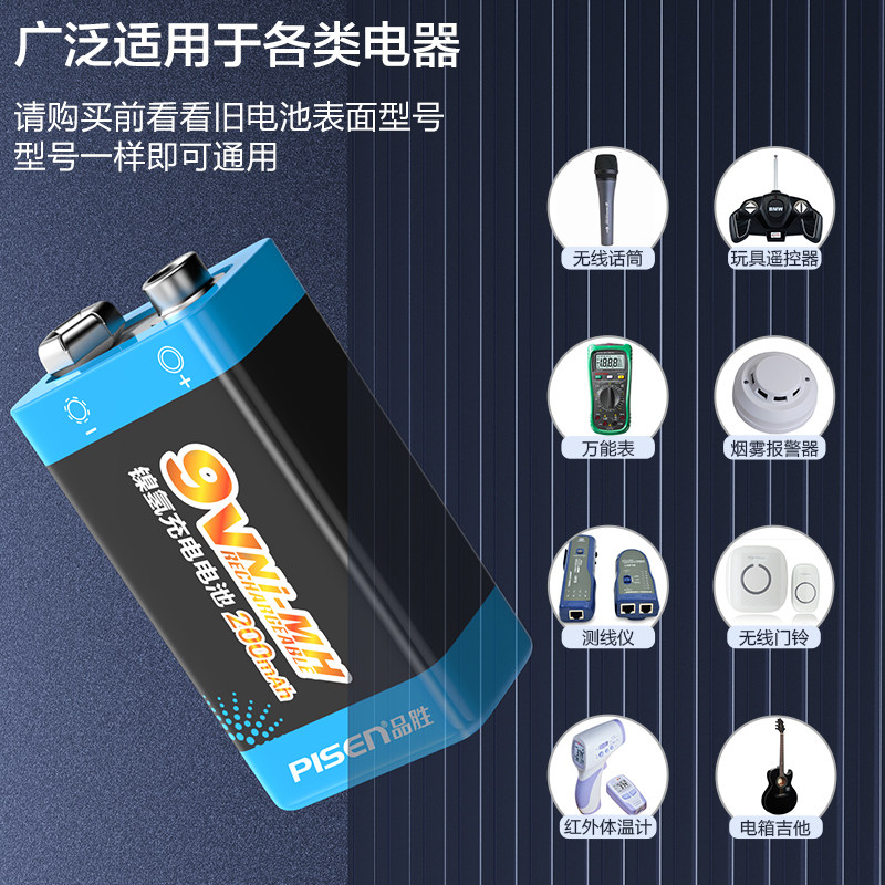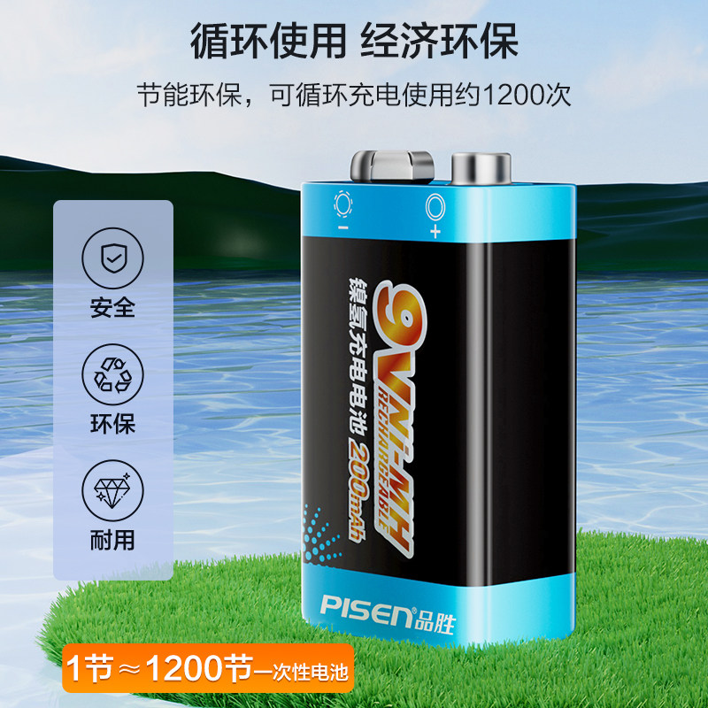 品胜9V充电电池方形6F22镍氢电池充电器套装200mAh万用表麦克风吉他玩具遥控器门铃探测仪报警器KTV无线话筒