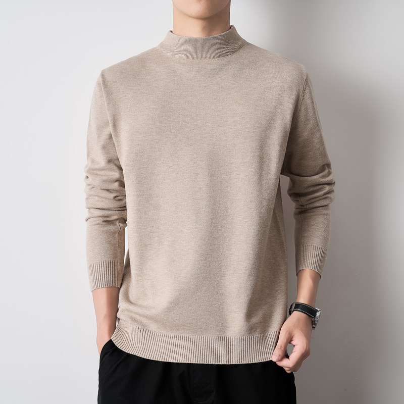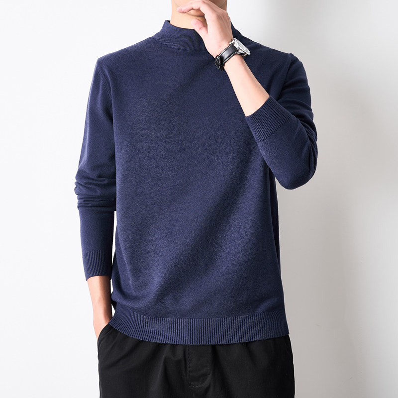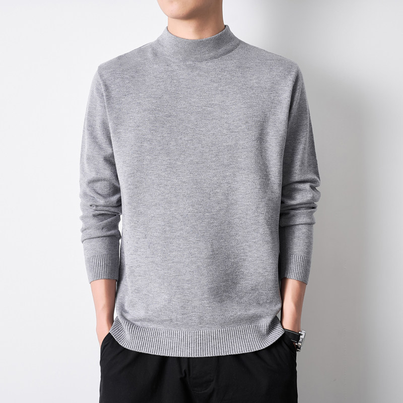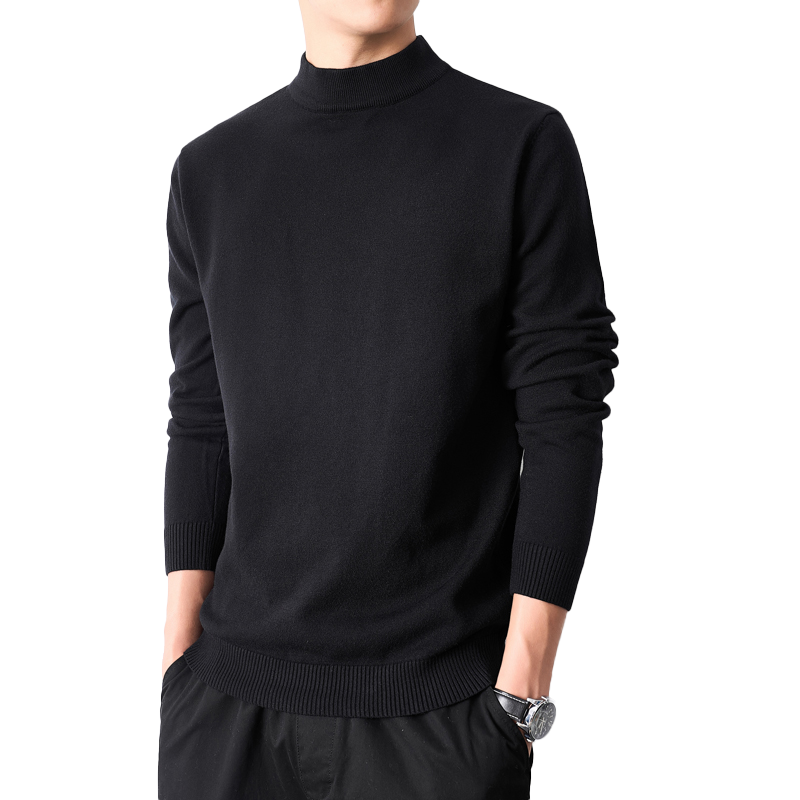 鄂尔多斯市半高领100%纯羊毛衫男休闲中厚保暖毛衣针织打底羊绒衫