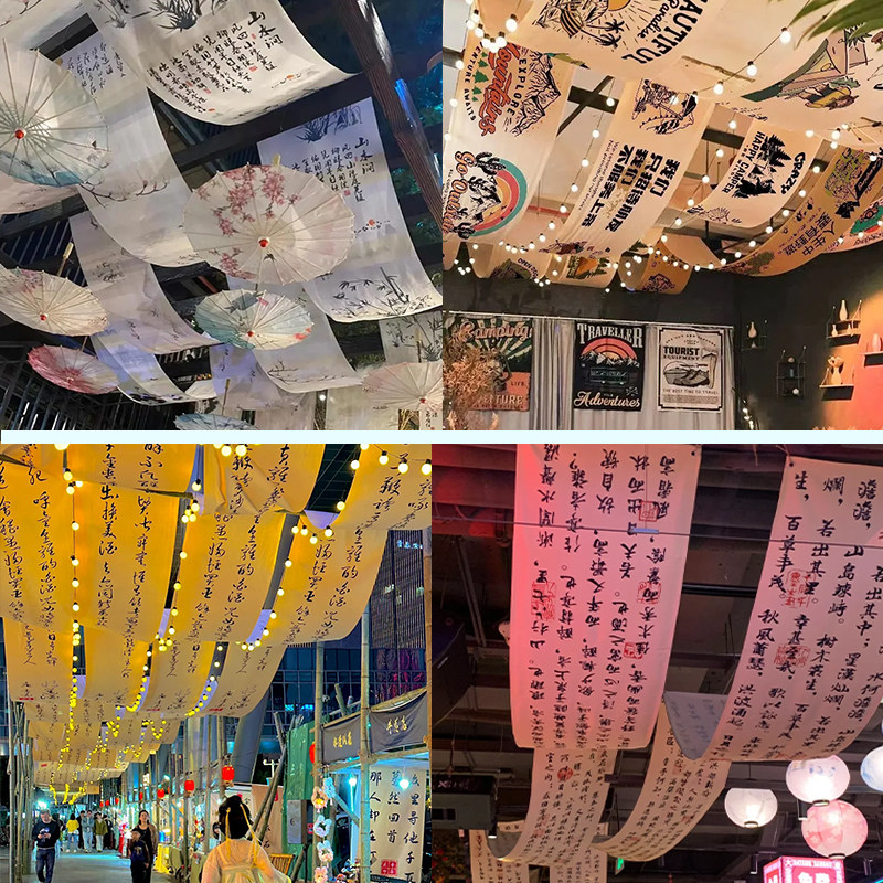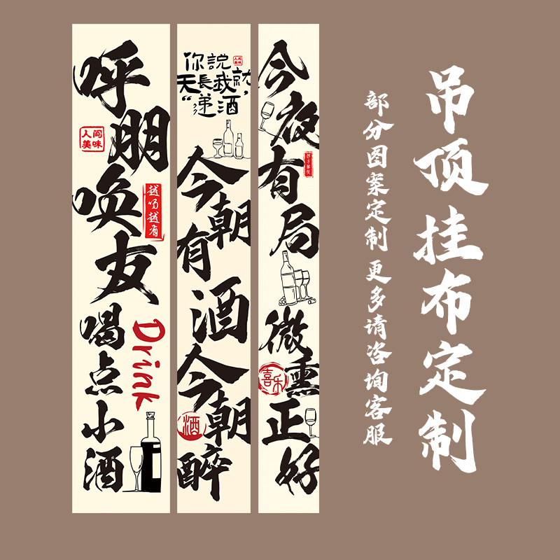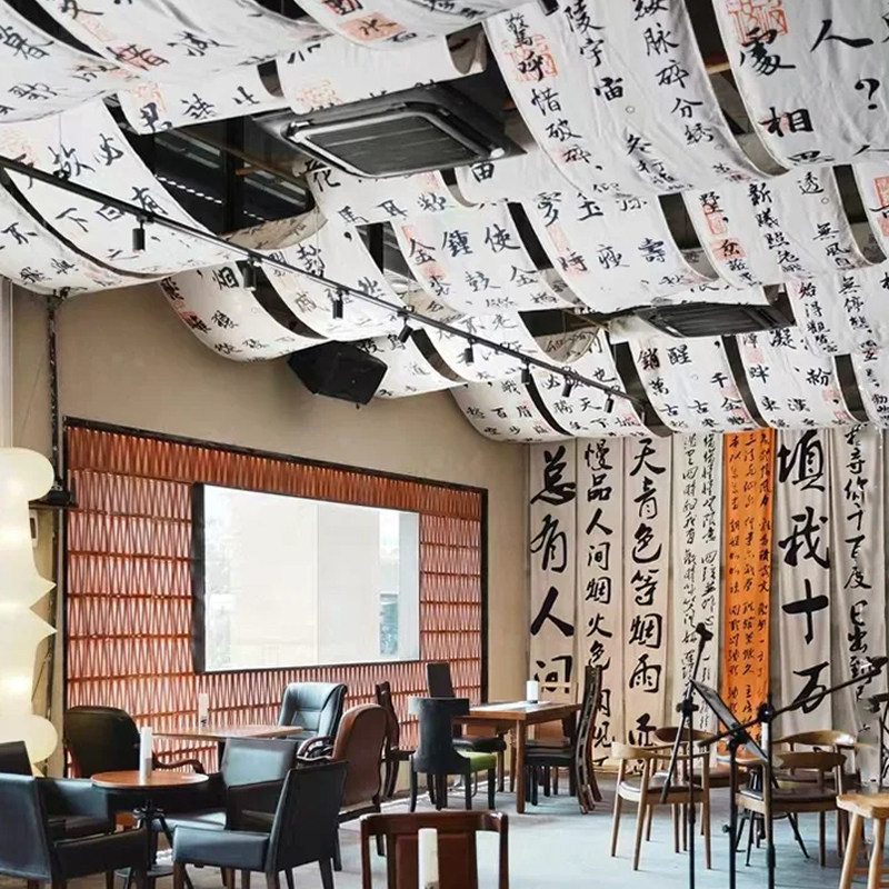 室内网红天幕吊顶条幅定制餐厅中式古风书法文化拉条装饰氛围旗子布置露营烧烤彩色横幅旗帜小酒馆天花板挂布