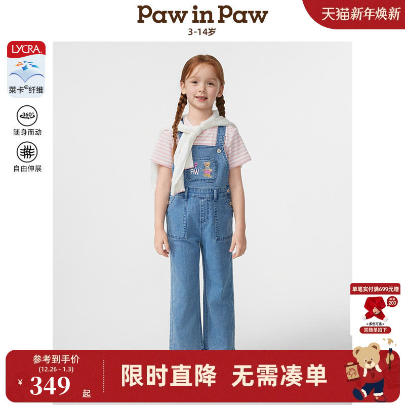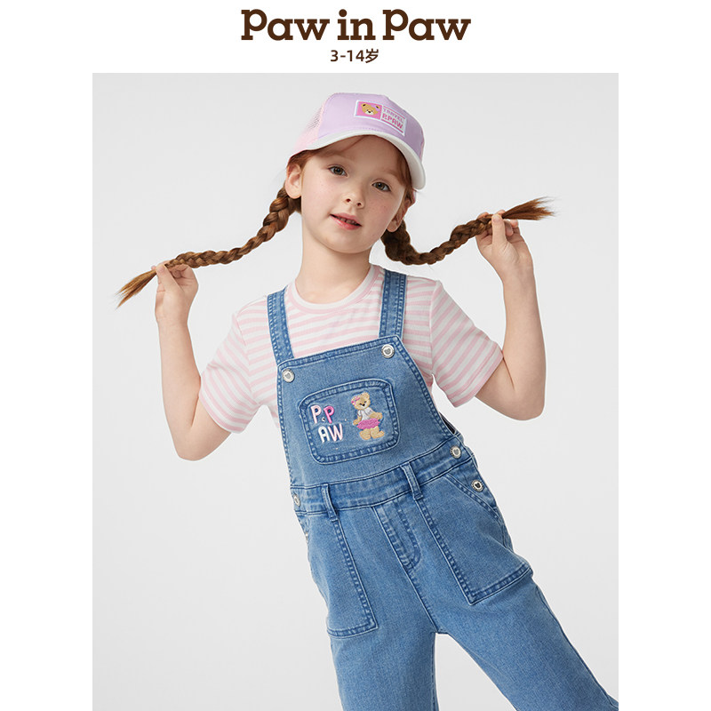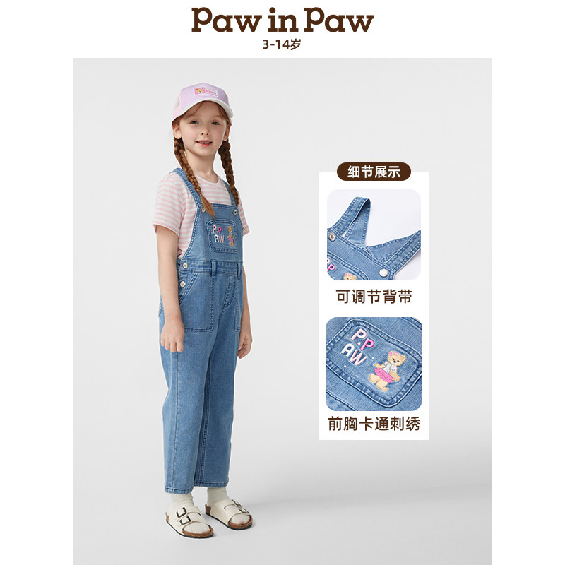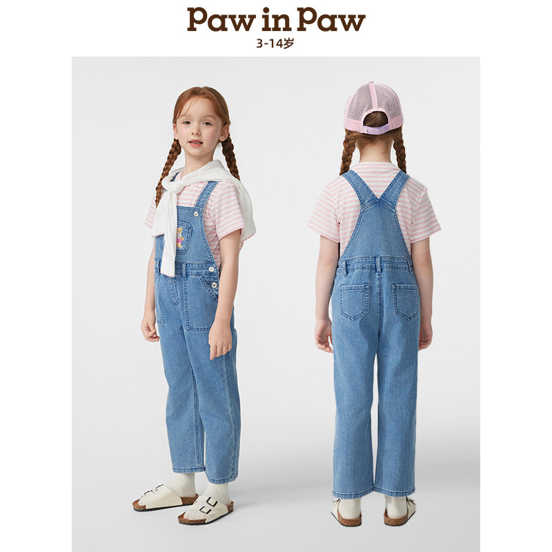 【莱卡】PawinPaw卡通小熊童装25年春夏新款女童宽松牛仔裤背带裤