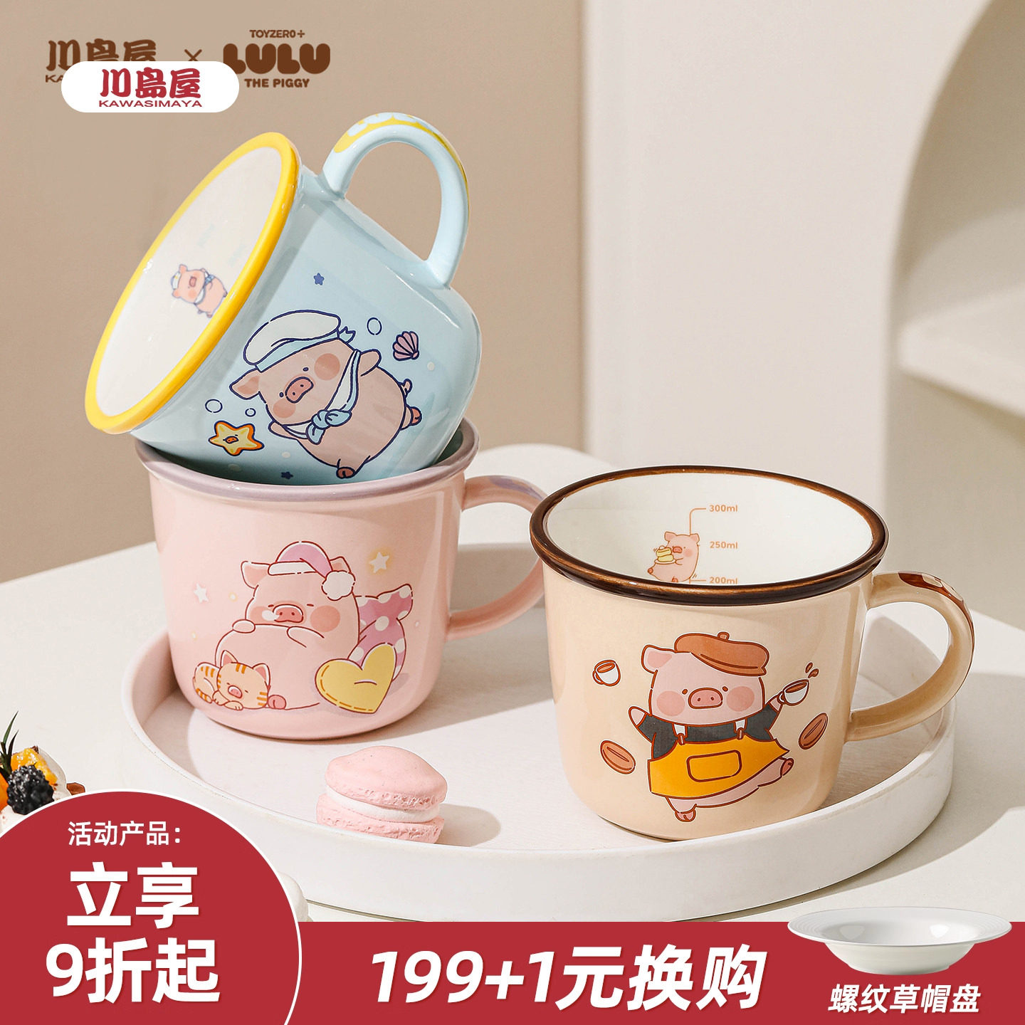 川岛屋&lulu猪联名 可爱马克杯陶瓷儿童水杯家用敞口刻度牛奶杯子