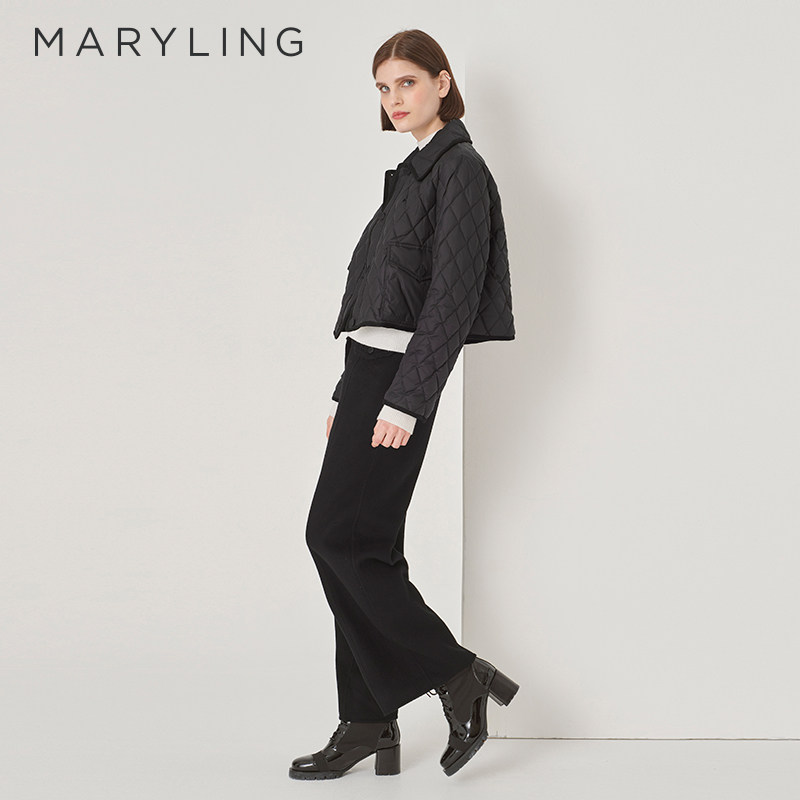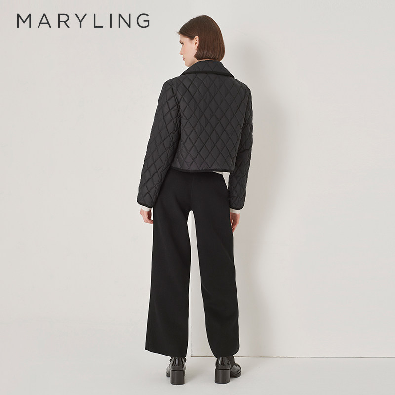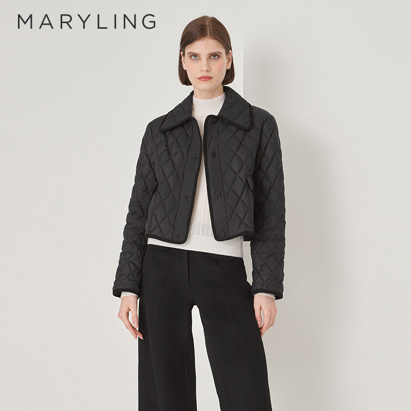 MARYLING玛俪琳秋冬新品翻领菱形格短款轻薄羽绒服百搭高级感外套