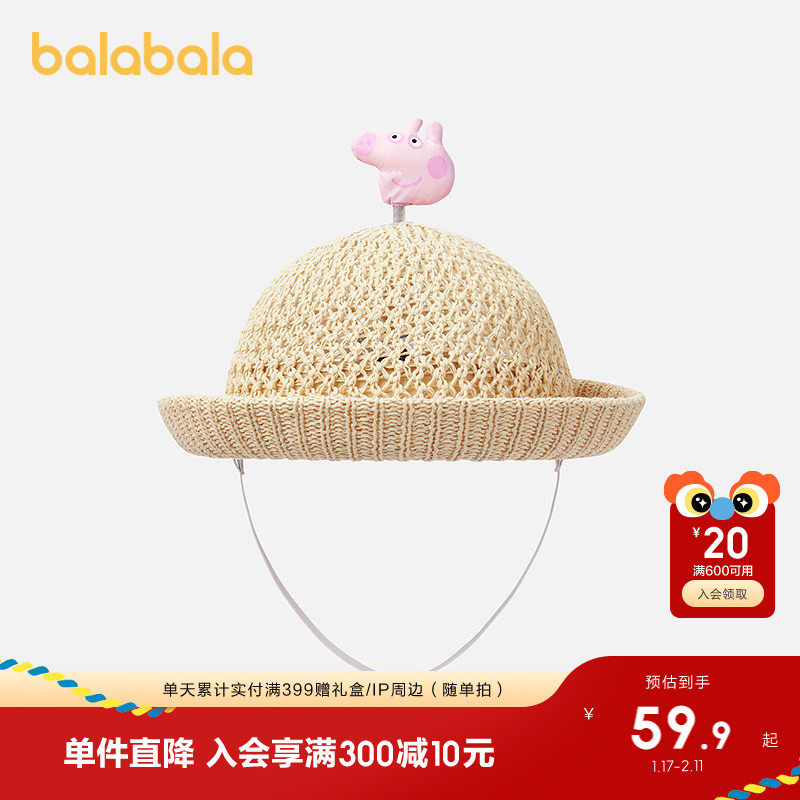 【小猪佩奇IP】巴拉巴拉婴童帽子宝宝盆帽舒适时尚可爱萌潮酷萌趣
